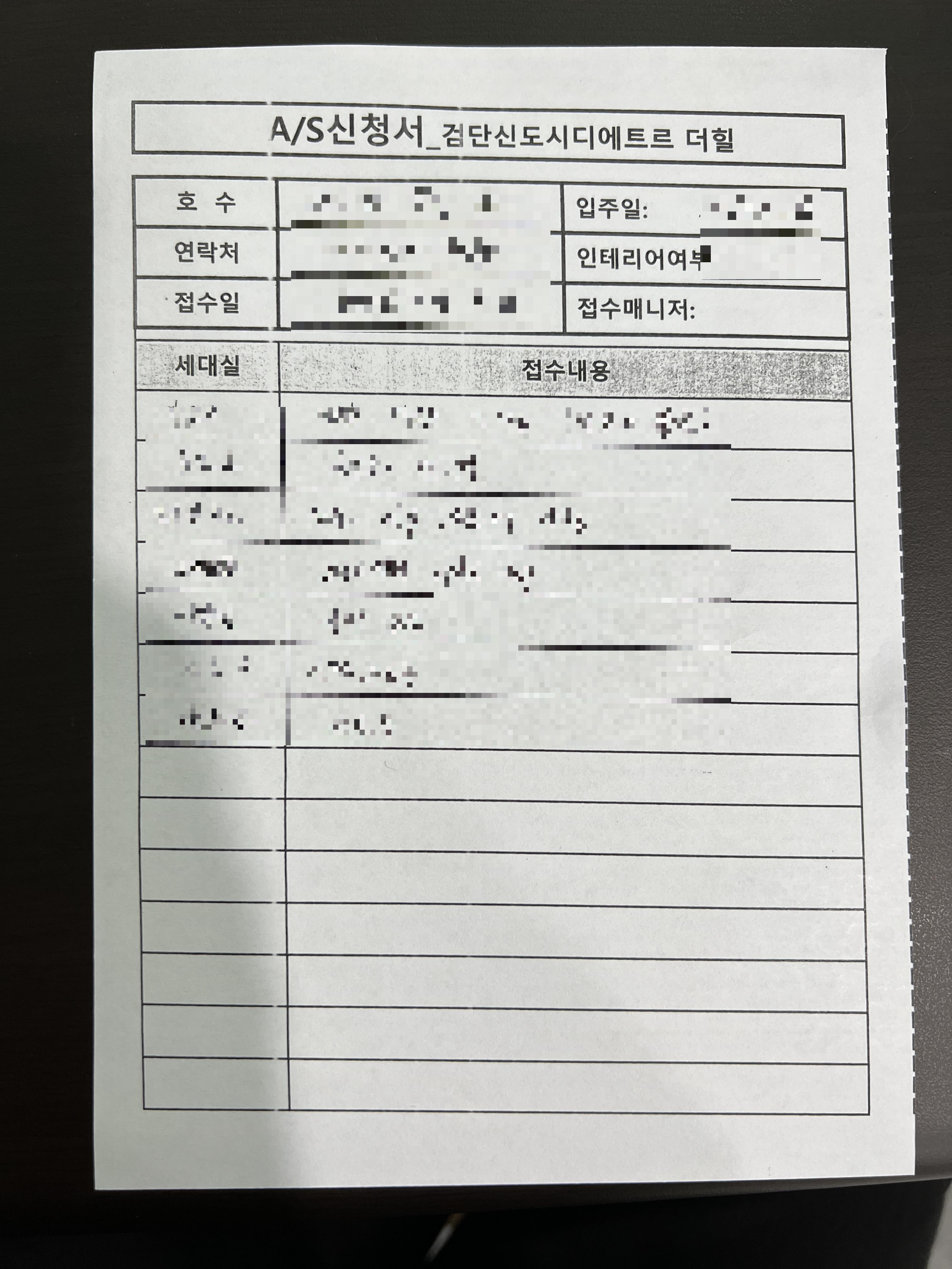 이렇게 검단신도시 디에트르더힐 사후점검과 A/S (하자접수) 접수까지 마쳤습니다.