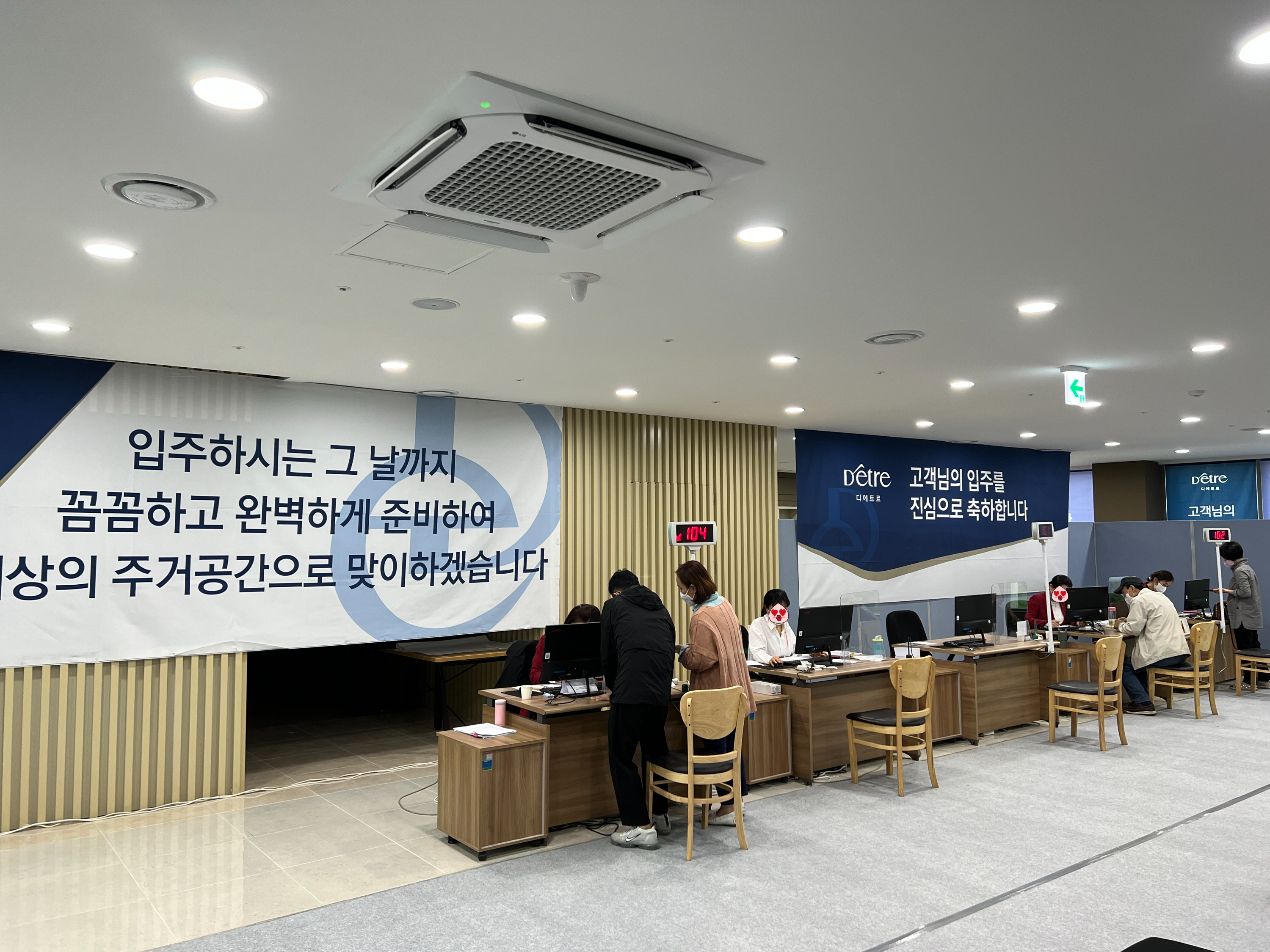지하2층 입주자 지원센터에 가면, 번호표를 뽑고 마스터키를 받아서 세대로 가면 됩니다.