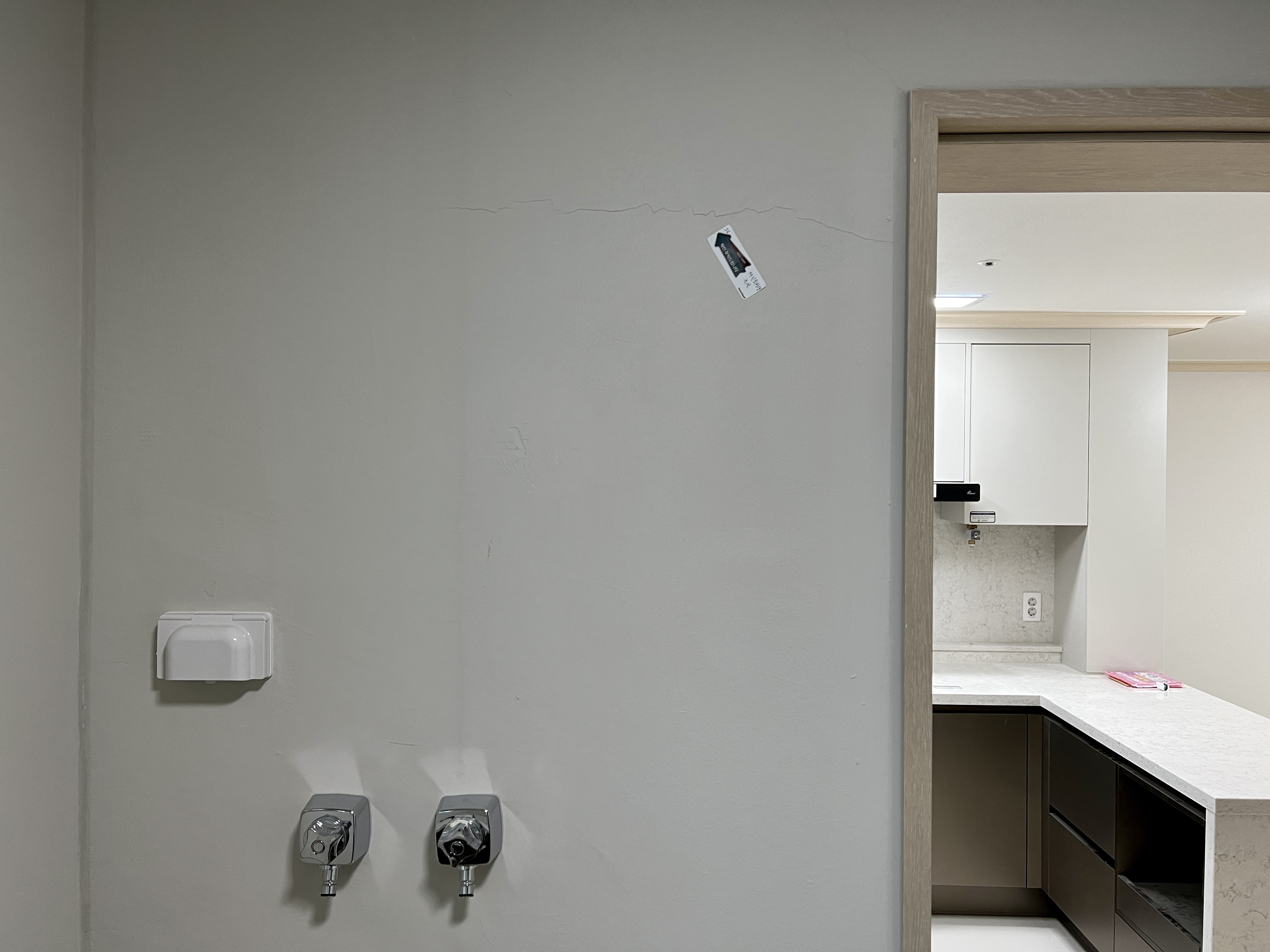 외관상 보기 좋지 않게 되어 있었고, 콘센트도 떨어져 있었으며, 세탁실 벽 균열도 그대로....