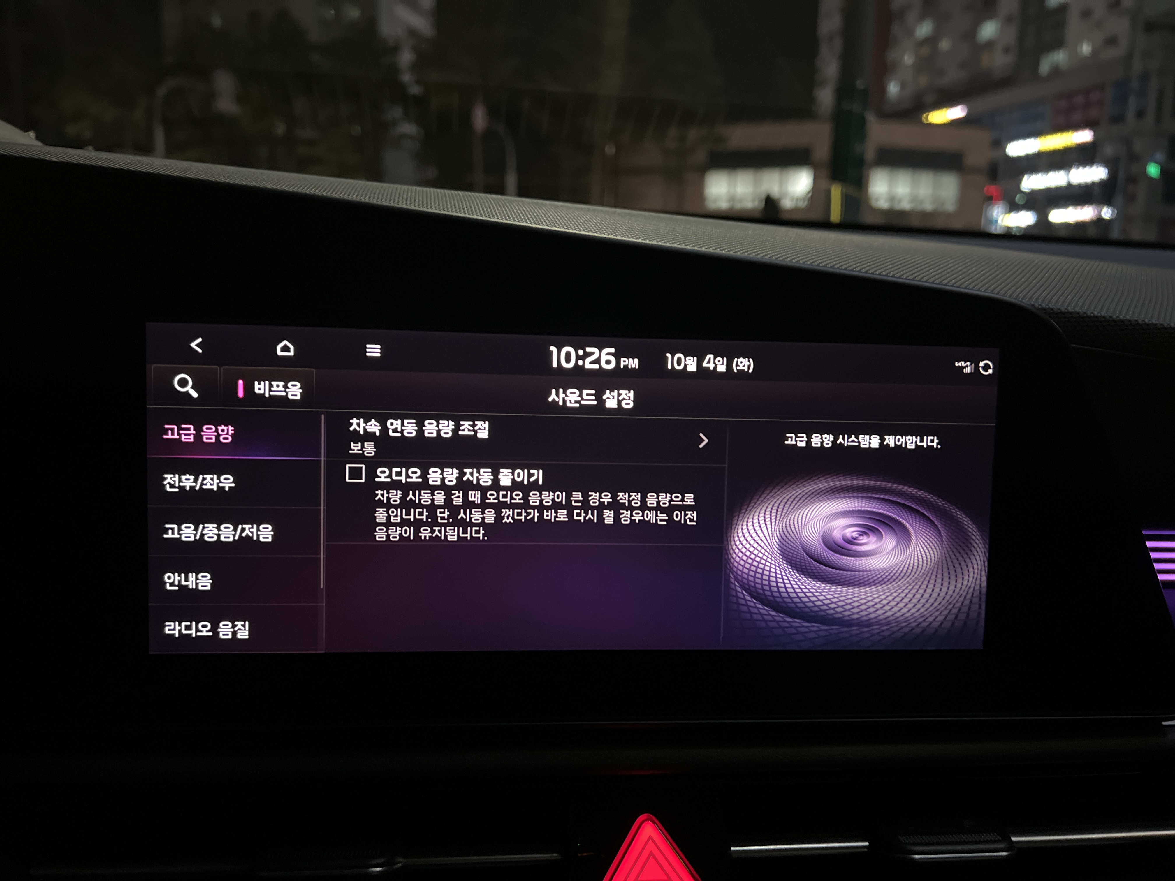 차를 잘 아는 친구가 프리미엄 스피커인 하만카돈의 스피커 설정값을 알려주어 설정하였습니다.