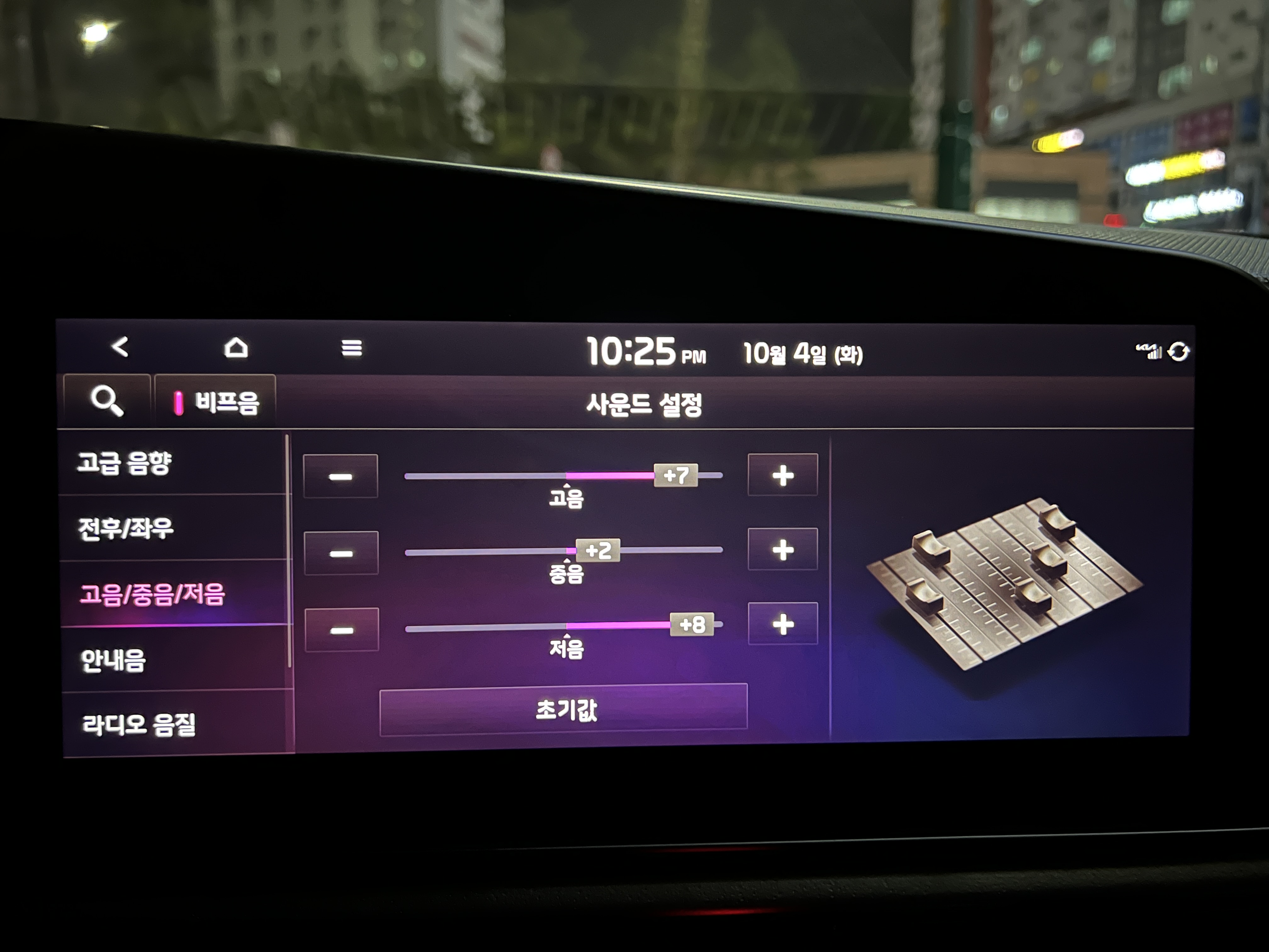 차를 잘 아는 친구가 프리미엄 스피커인 하만카돈의 스피커 설정값을 알려주어 설정하였습니다.