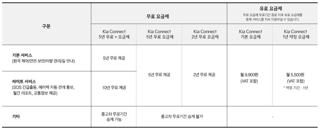 그 이후가 되면 기아커넥트 요금은 두가지로 나뉩니다.