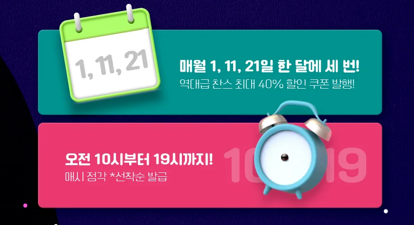 다운로드 선착순에 따른 조기 소진 시 쿠폰이 발급되지 않습니다.