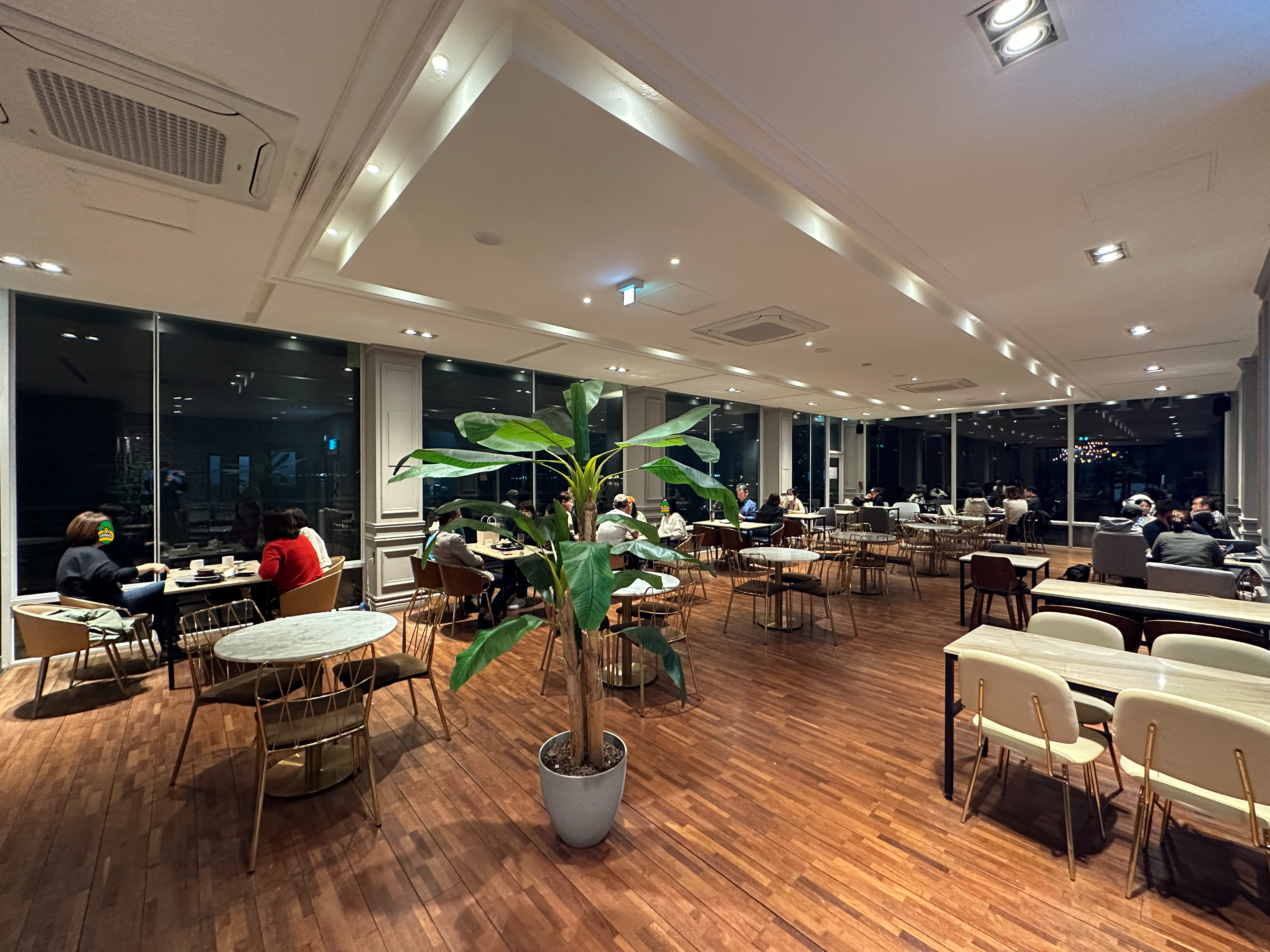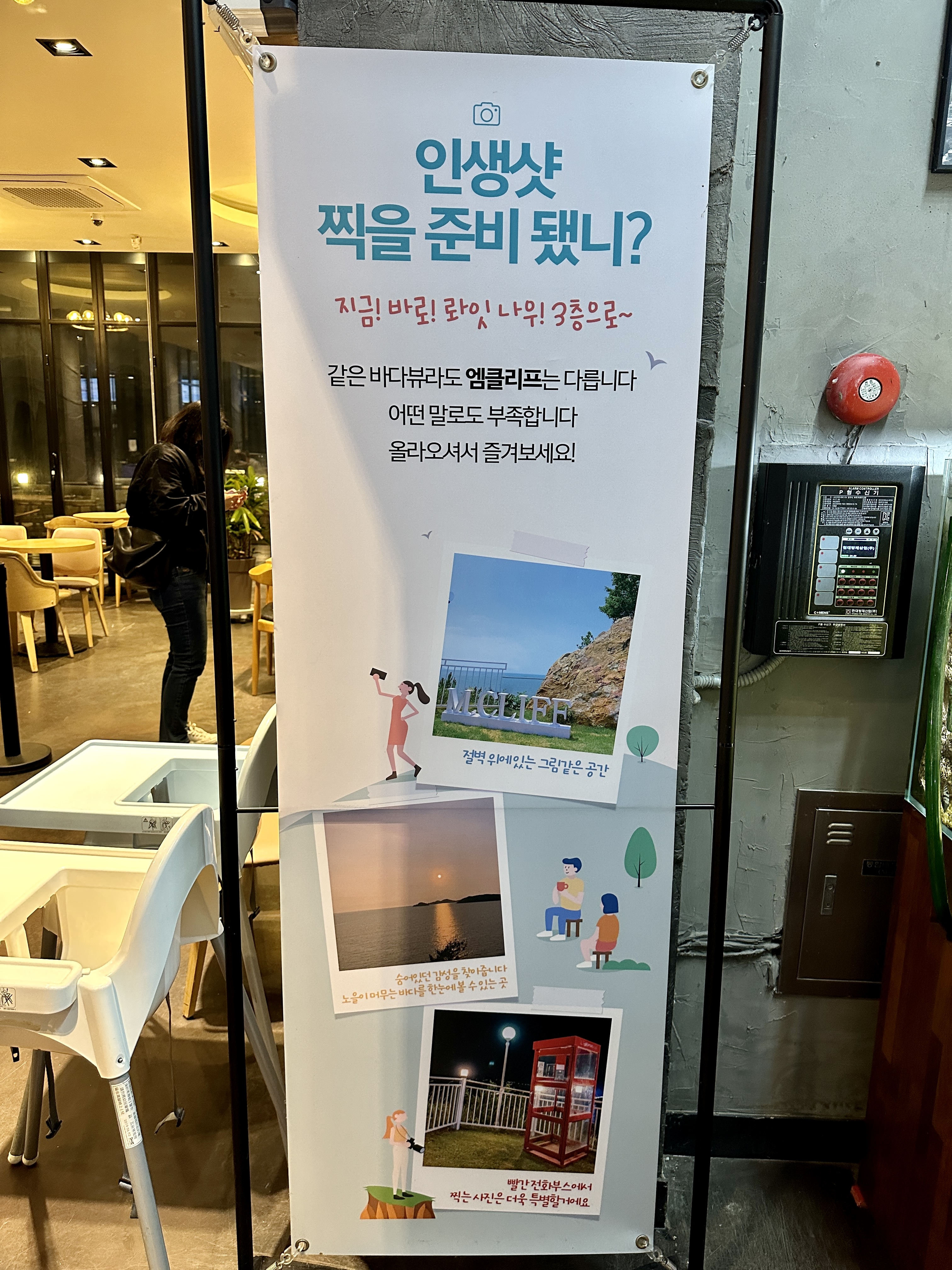 저는 조금 늦게 합류하여 저녁 때 방문하였는데, 일몰 때 오면 전망이 참 좋을 것 같은 엠클리프 카페입니다.