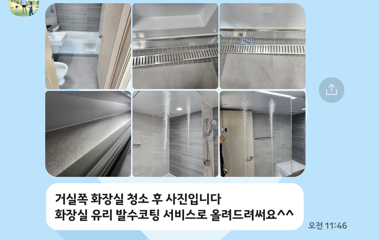 그리고 화장실 유리도 발수코팅까지 해주셔서 아직까지 너무 깨끗하게 잘 쓰구 있습니다.