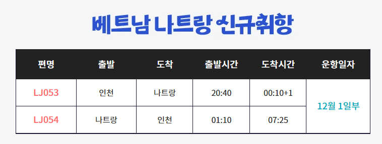 한편 진에어는 다른 베트남 노선인 나트랑에 12월 1일부로 신규취항한다고 합니다.