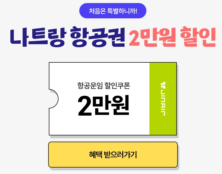 나트랑에 신규취항하며 2만원 할인 쿠폰도 혜택받아 구매할 수 있어 공유드립니다.