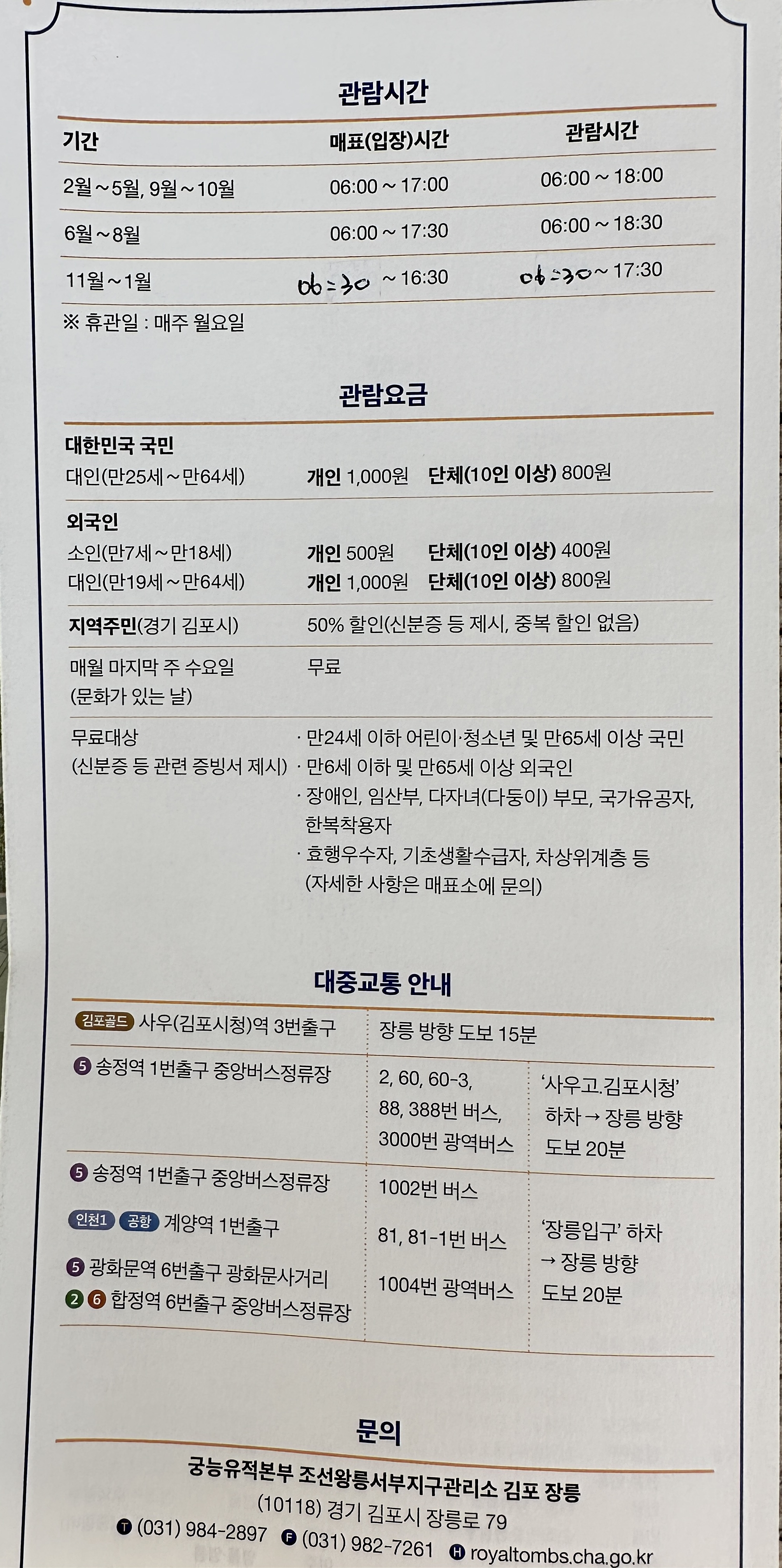 오늘은 김포 장릉에 대한 전반적인 주차나 입장시간 및 입장료 등을 소개해 드렸습니다.