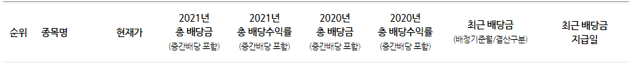 조사한 시가배당률 순위는 아래와 같습니다.