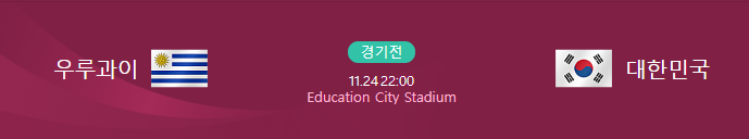 대한민국 우루과이 경기일정은 11월 24일 (목) 22시에 Education City stadium에서 진행됩니다.