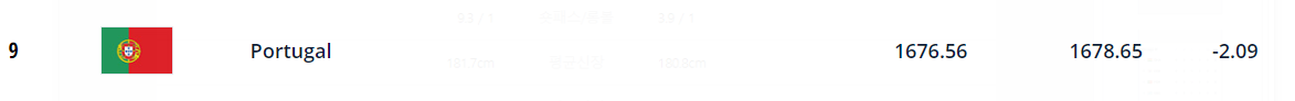 10월 6일 기준으로 피파에서 발표한 피파랭킹에 따르면 포르투갈 1676.56점으로 9위를 기록했습니다.