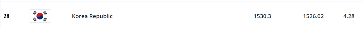 먼저 알아본 10월 6일 발표기준 대한민국 피파랭킹은 28위 입니다.