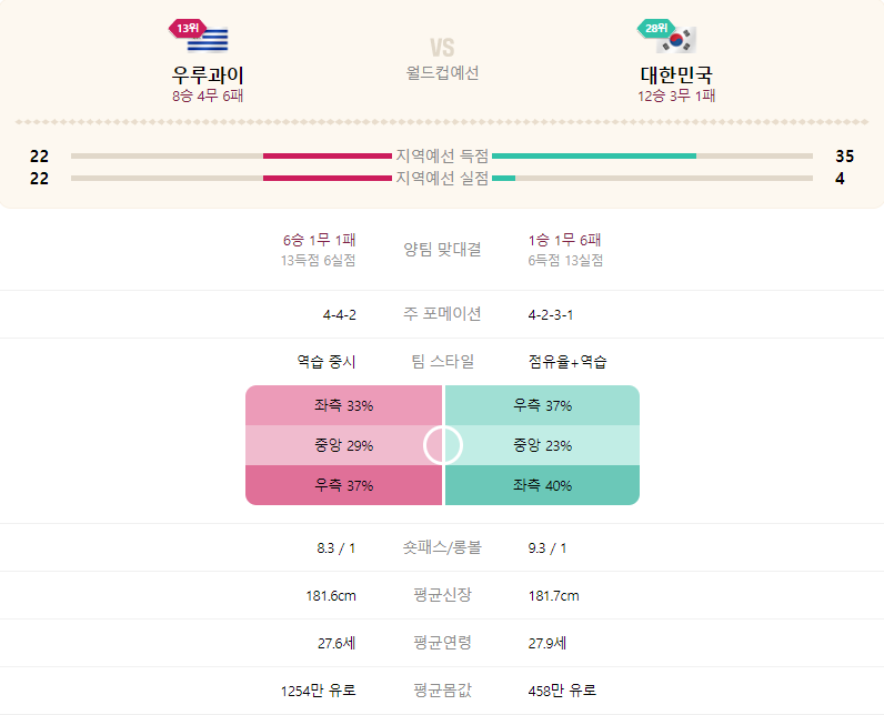 아래 링크는 피파에서 분석한 우루과이에 대한 분석정보입니다.