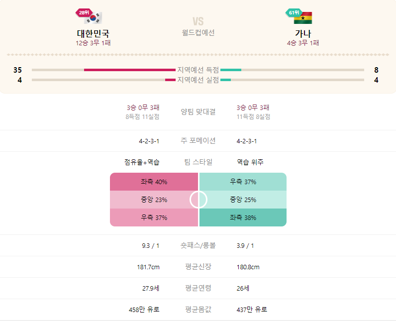 평균신장은 181.6cm와 181.로 거의 비슷하니 체격조건에서는 해볼만하다고 볼 수 있습니다.