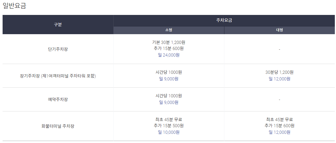 인천공항 1터미널 주차 정보 :