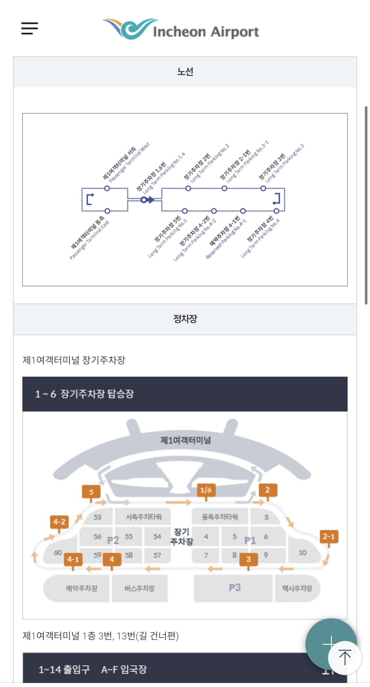 인천공항 장기주차장으로 가는 셔틀버스는 1층 14번 출구로 나와서 횡단보도를 건너면