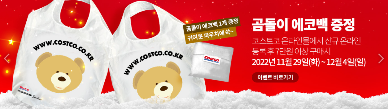 2022년 12월 코스트코에서는 귀여운 파우치에 쏙 들어가는 곰돌이 에코백 증정 이벤트를 진행하고 있습니다.