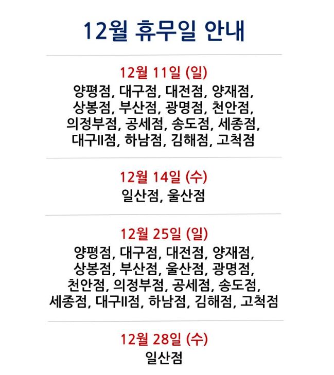 2022년 12월 홈플러스 휴무일 안내 | 홈플러스 12월 휴무일 정보