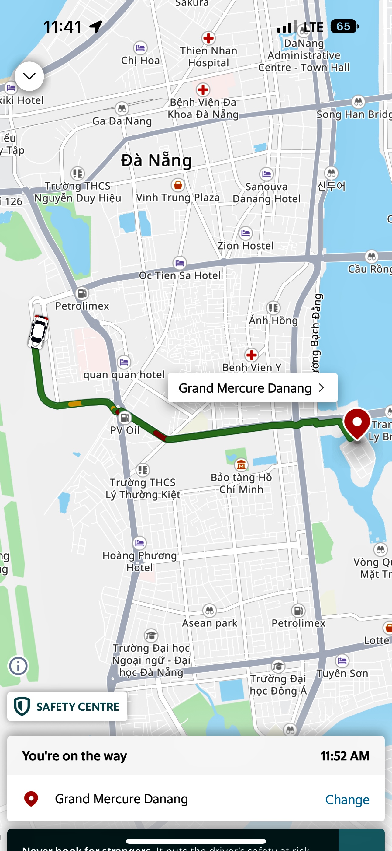 바로 그랩을 잡아 다낭 공항에서 시내로 베트남 화폐인 동 없이 이동할 수 있습니다.