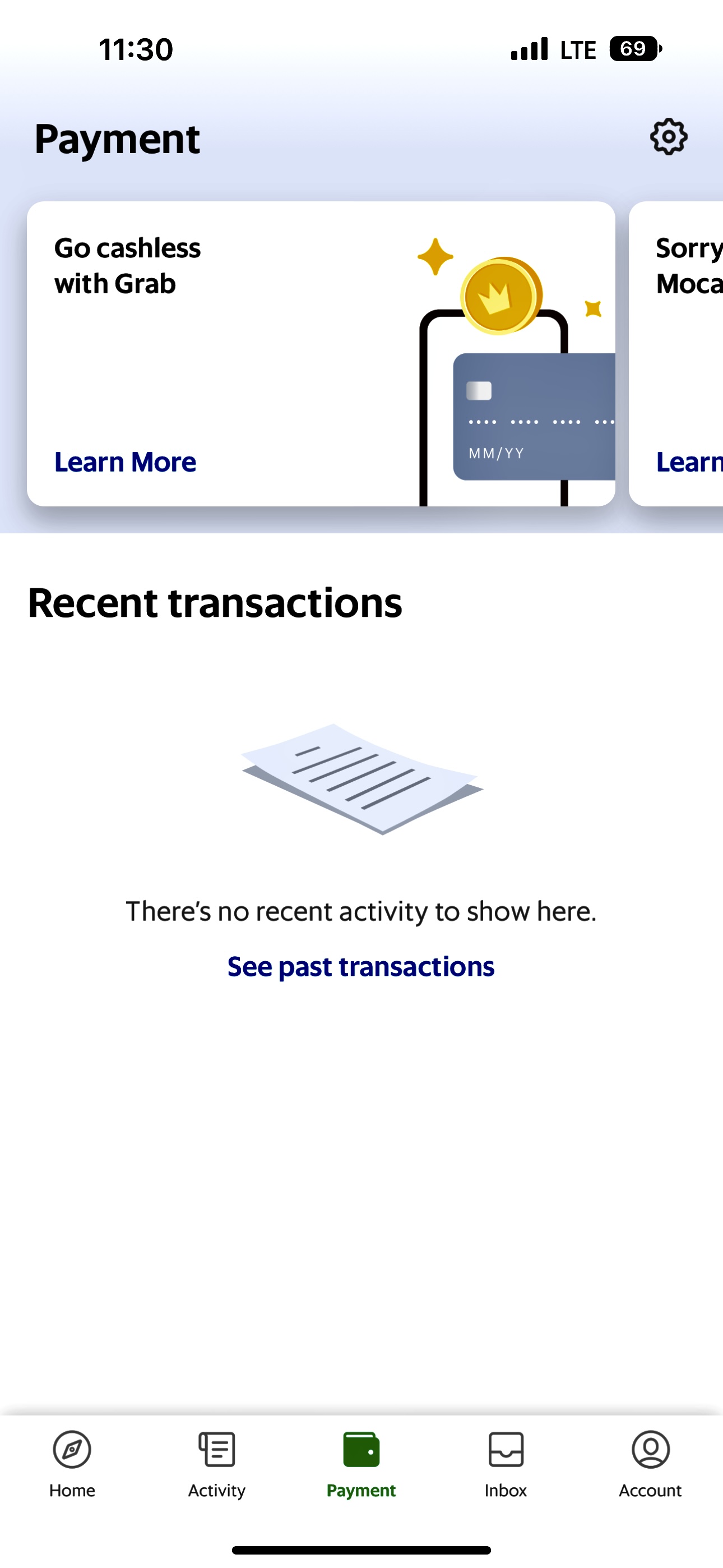 그랩을 설치하고 Payment 탭에 카드를 등록하면 공항에서 비싸게 환전하지 않고,