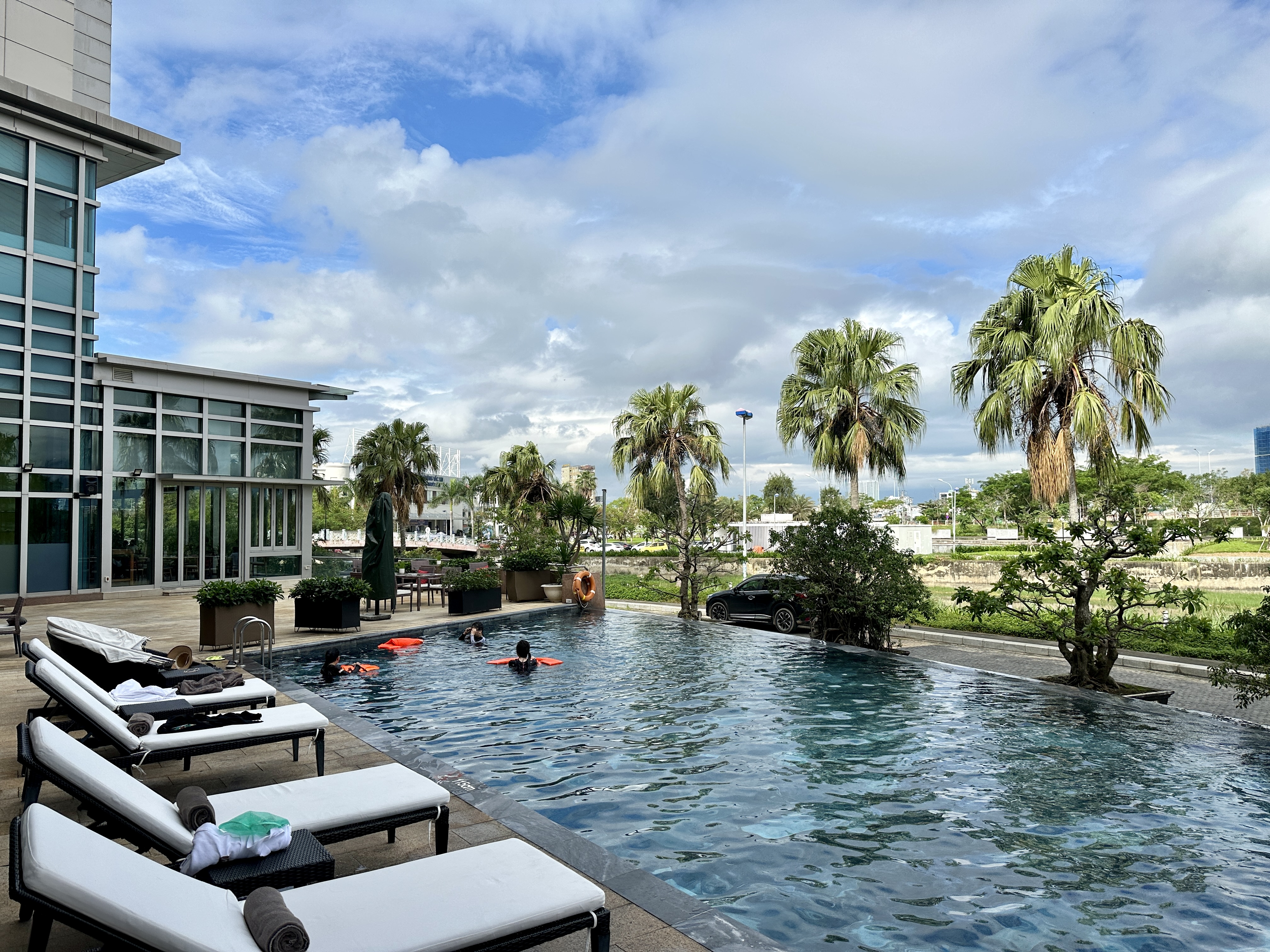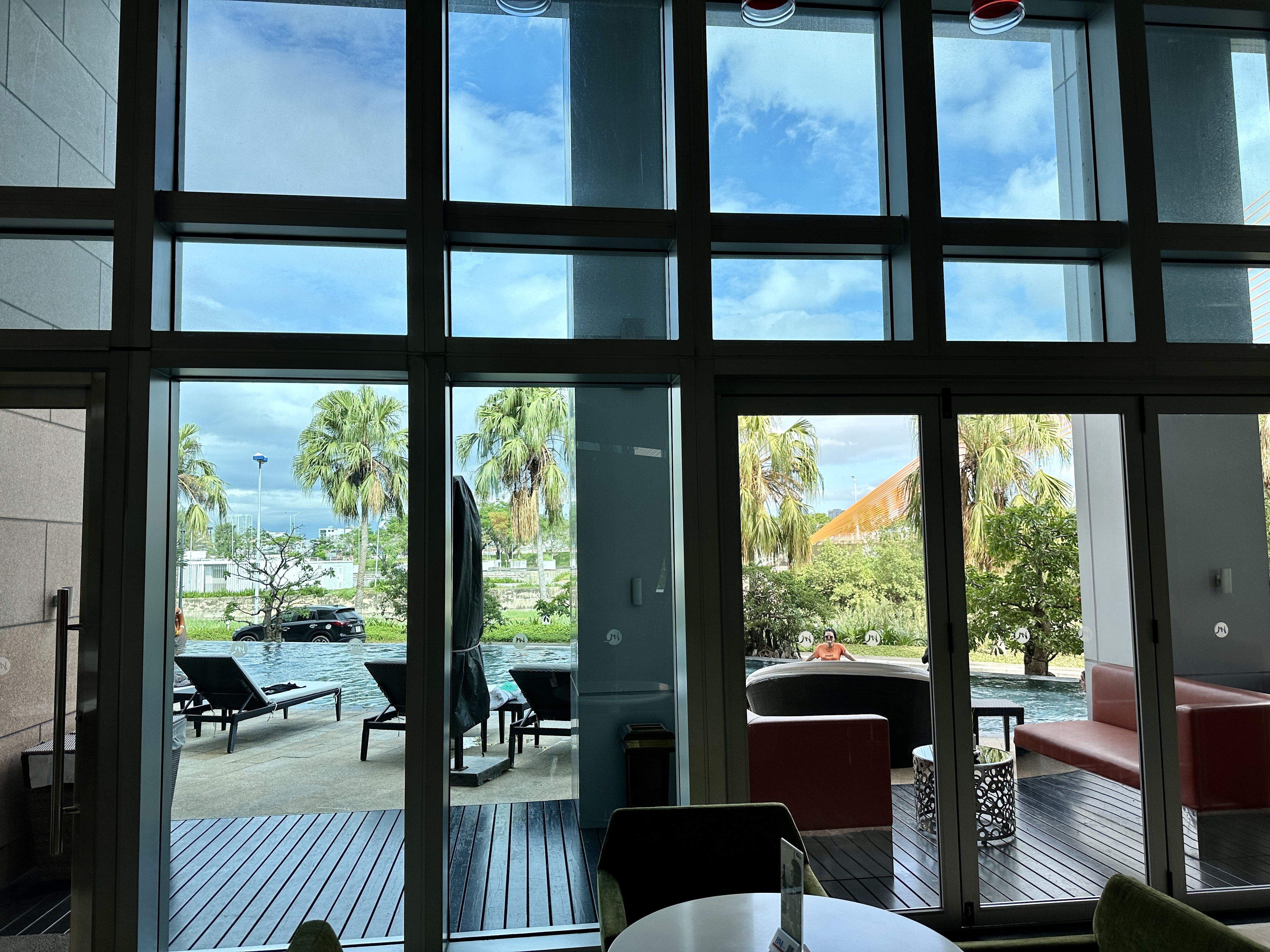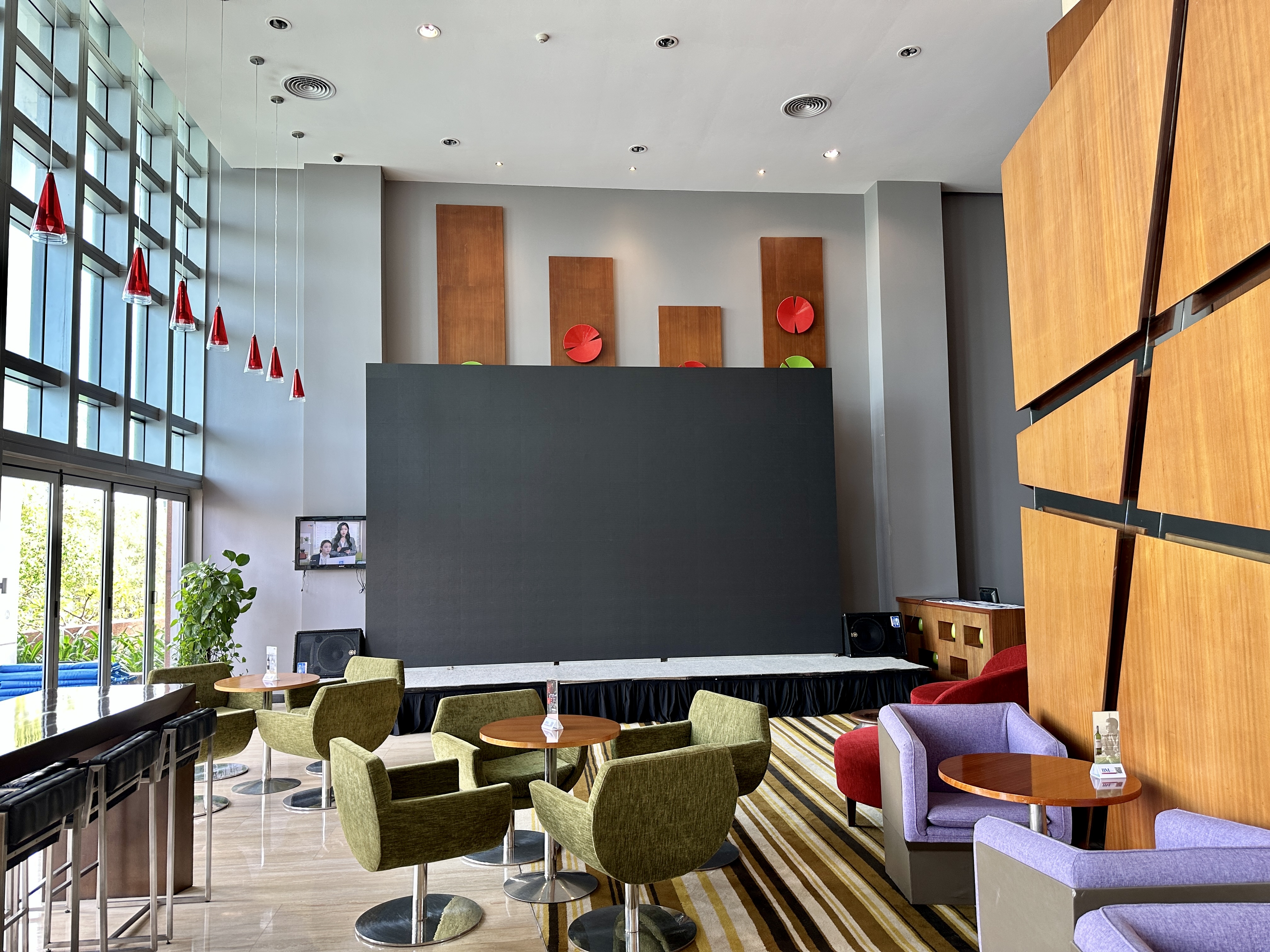 다낭 숙소 가성비 좋은 호텔인 그랜드 머큐어 다낭은 1층에 수영장과 바 그리고 TV를 볼 수 있고