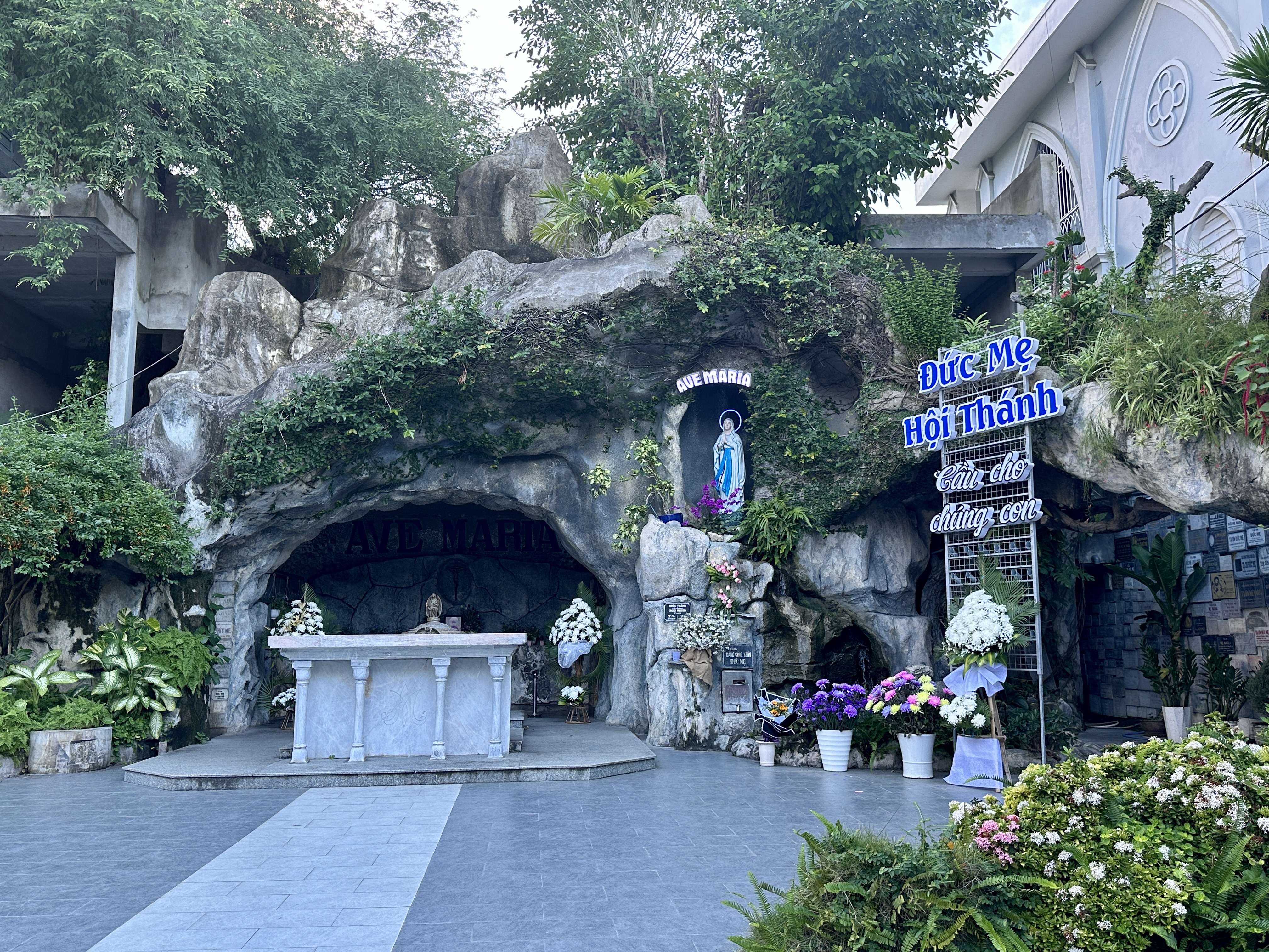 성당 뒤편에는 성모 마리아상이 있는데 '성모 발현 성지'로 유명한 프랑스의 루르드 지역의