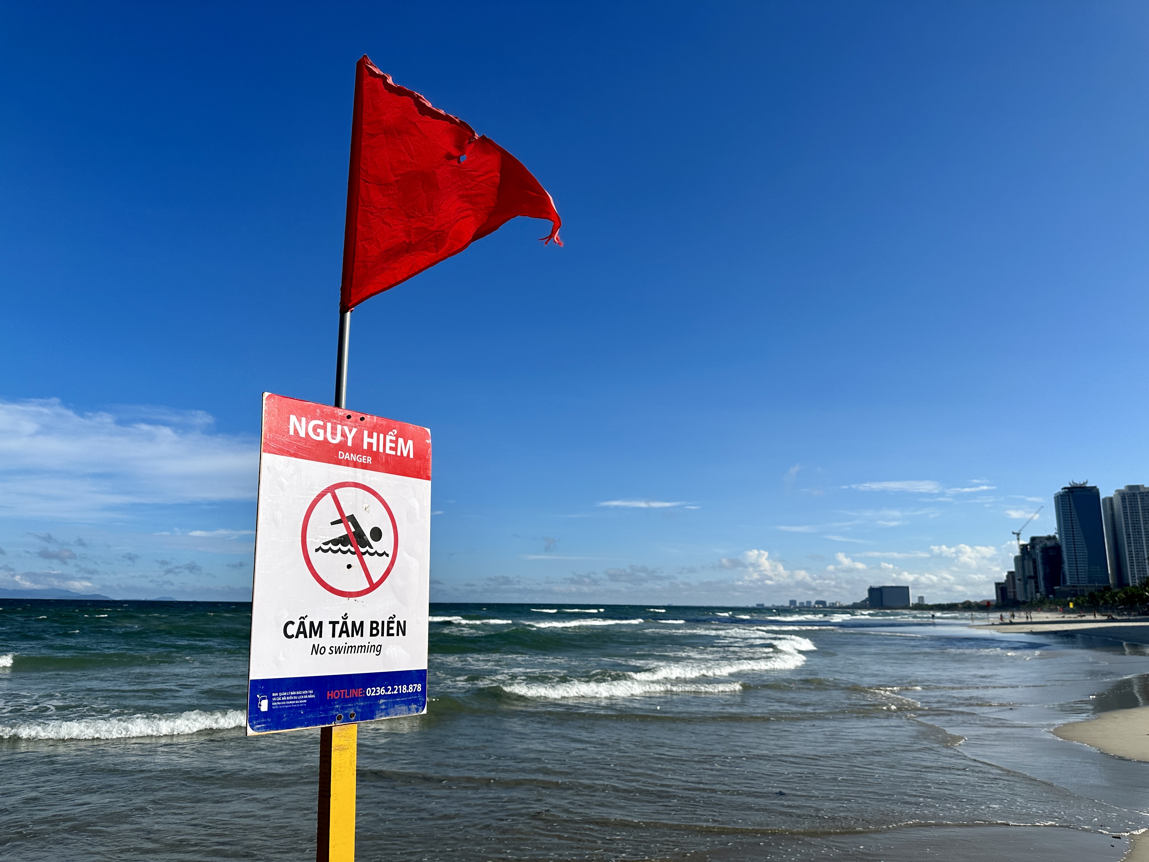 이날은 파도가 거셌는지 미케비치 일부 지역에 수영 금지 표지판이 꽃혀 있었습니다.