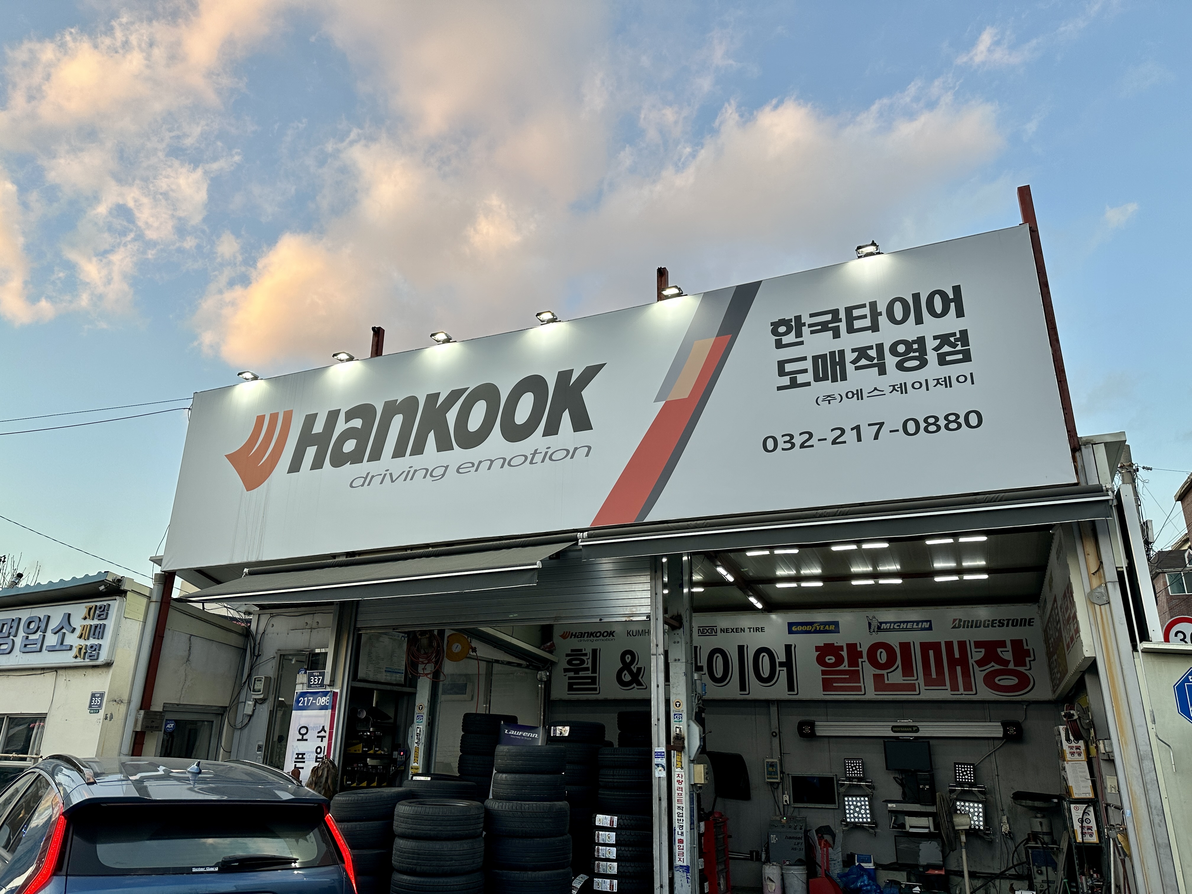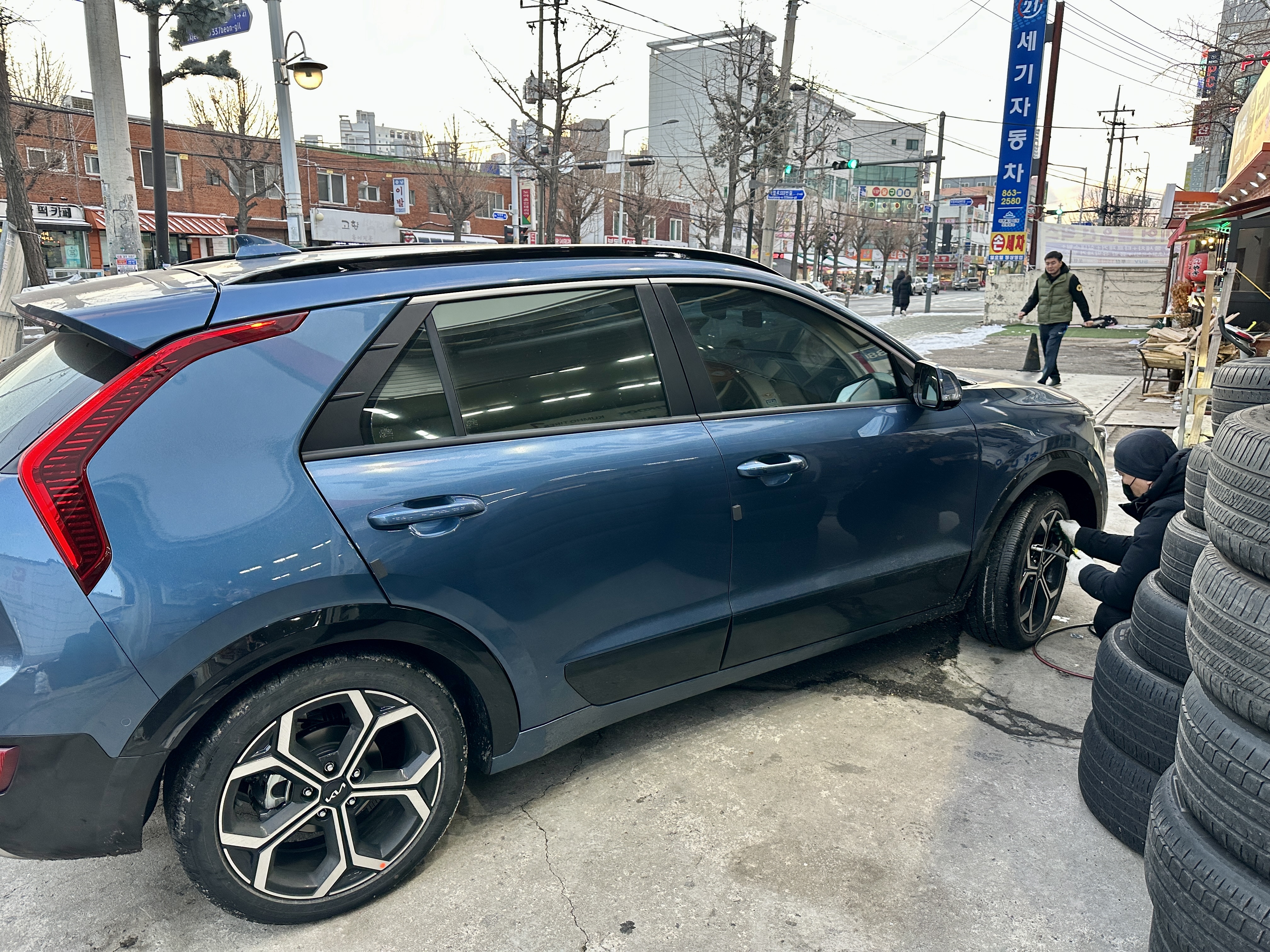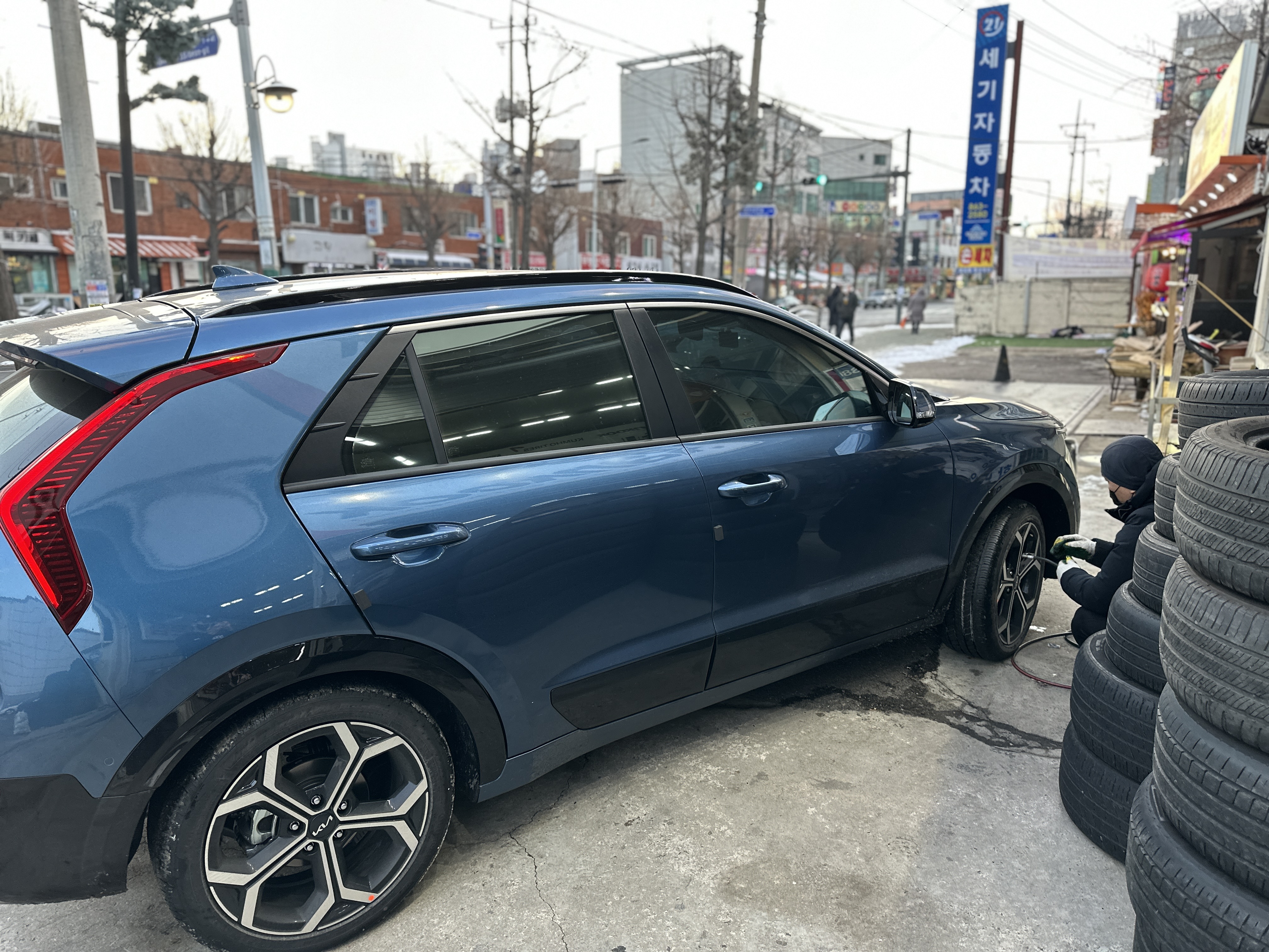 기아 오토큐가 생각보다 일찍 닫아서 결국 타이어 가게에서 공기압을 채워주셨습니다.