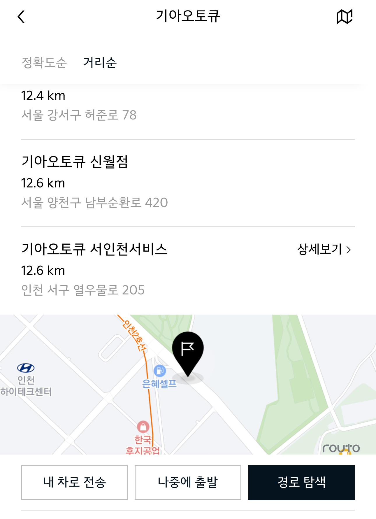기아 마이커넥트 앱 내에서 기아오토큐를 찾아서 출발했습니다.