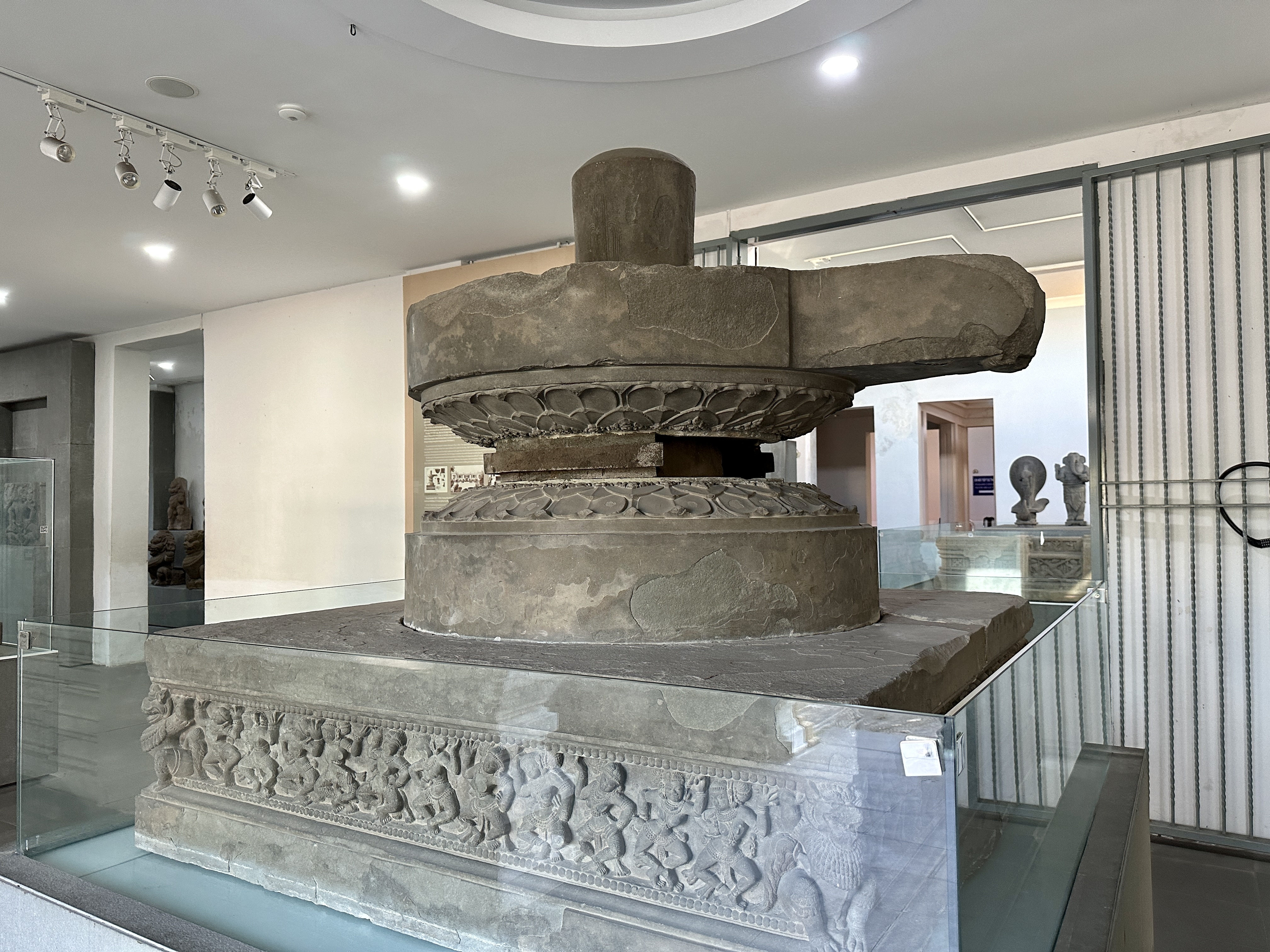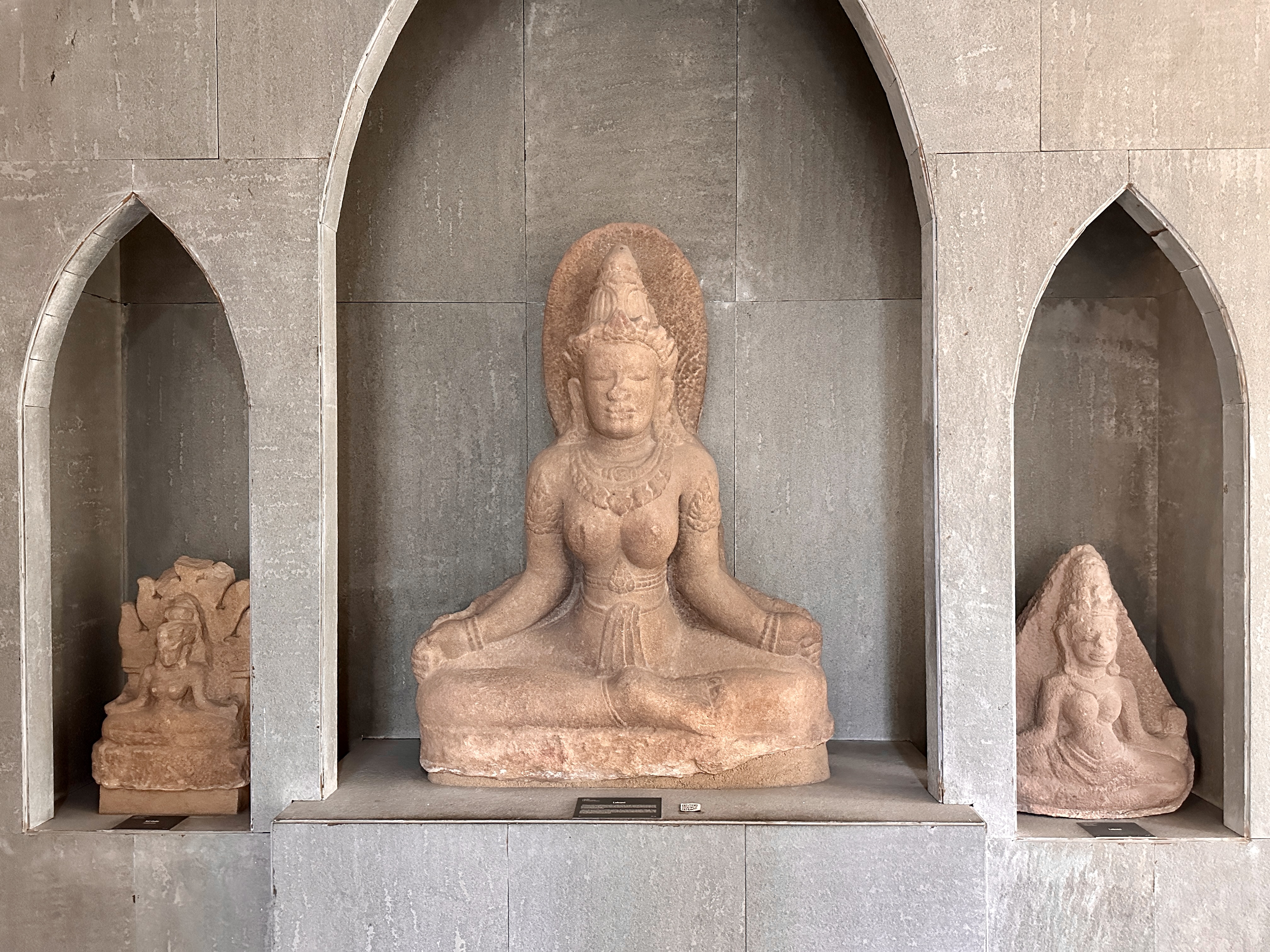 유물에서는 힌두교의 3대 신 브라흐미, 비슈누, 시바와 불교의 부다 모습이 함께 보이는