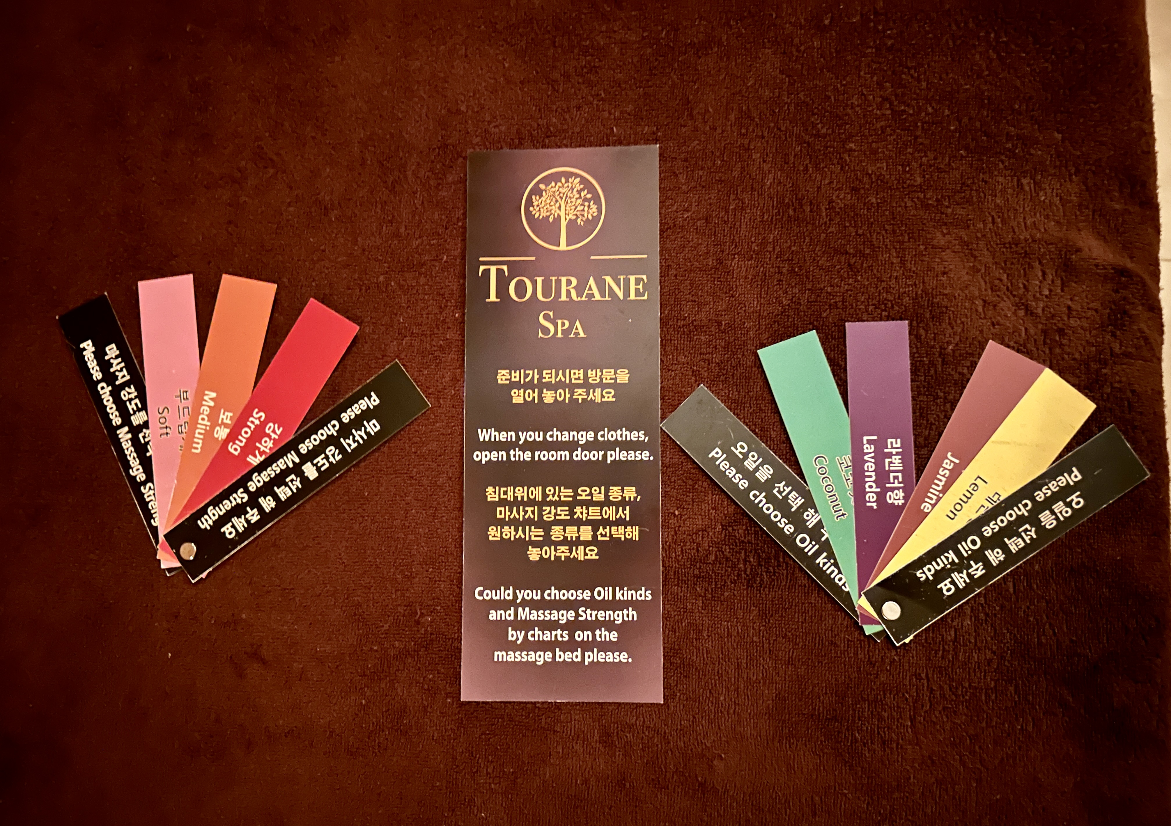 마사지 강도와 함께 어떤 향의 오일로 마사지를 받을지 선택할 수 있습니다.