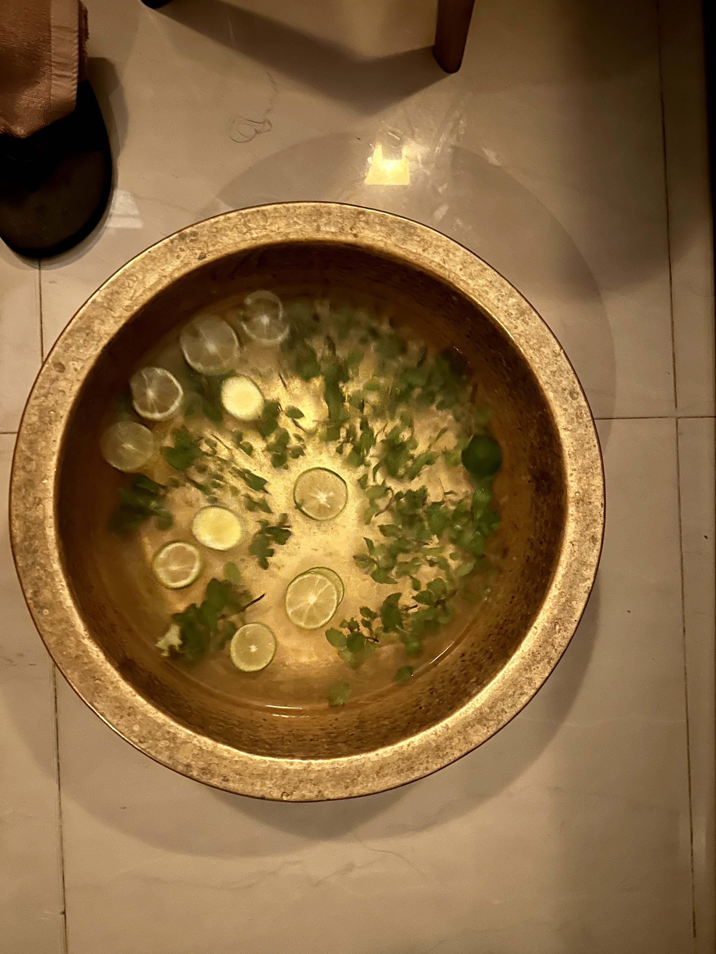 환복을 완료하고 문을 열어두면 라임이 담긴 물로 발부터 깨끗이 씻겨주시고