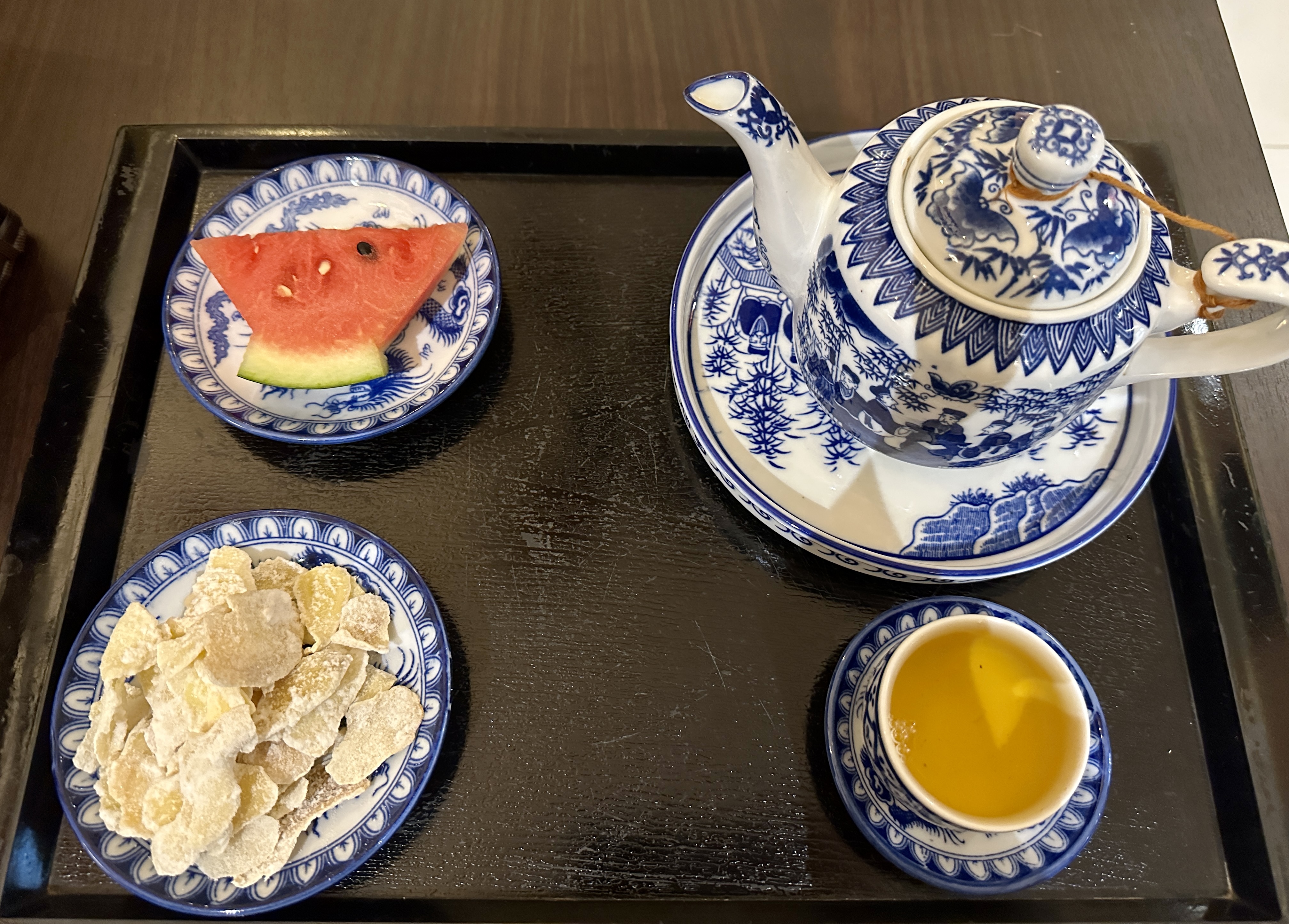투란스파 마사지가 끝나면 1층의 한 공간으로 안내되어 과일과 차 그리고 간단한 스낵을 줍니다.