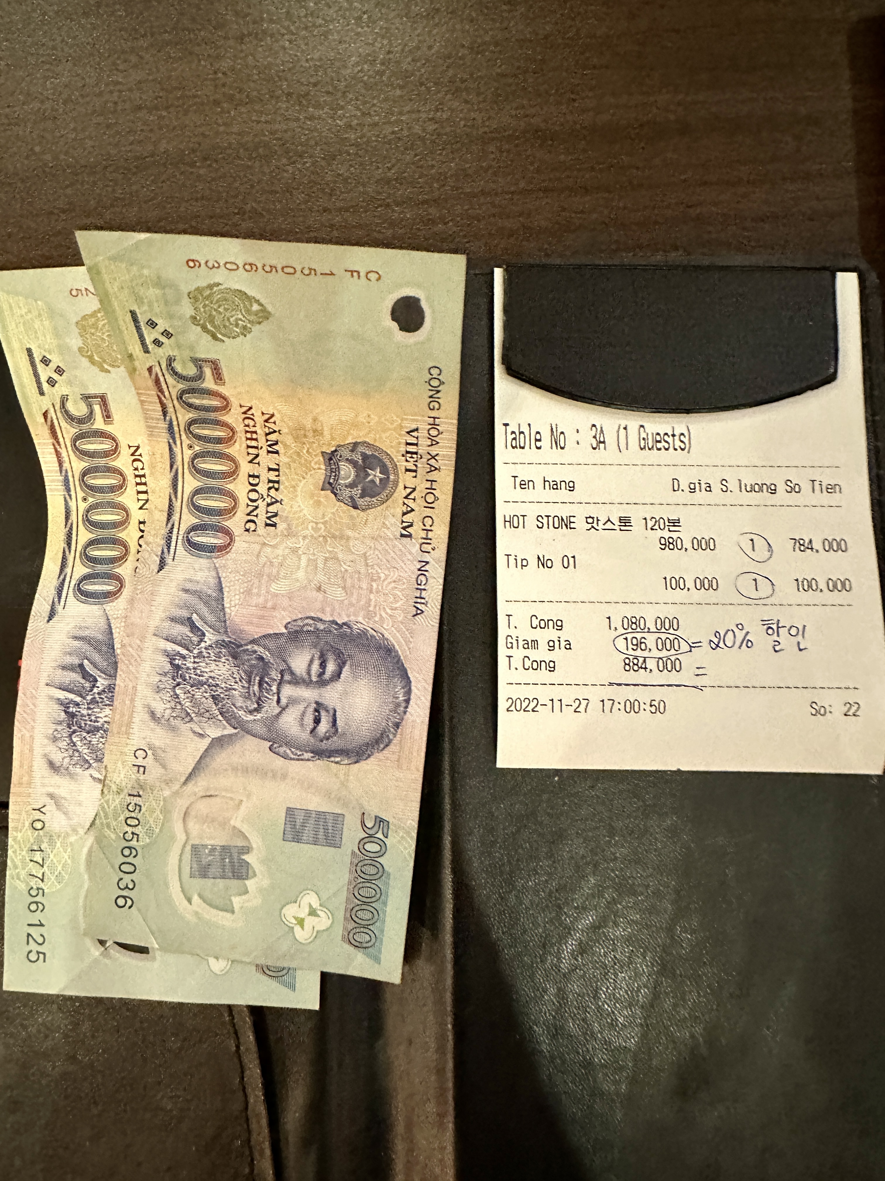핫스톤 마사지는 90분에 80만동, 2시간에 98만동인데 여기에 10% 세금이 붙습니다.