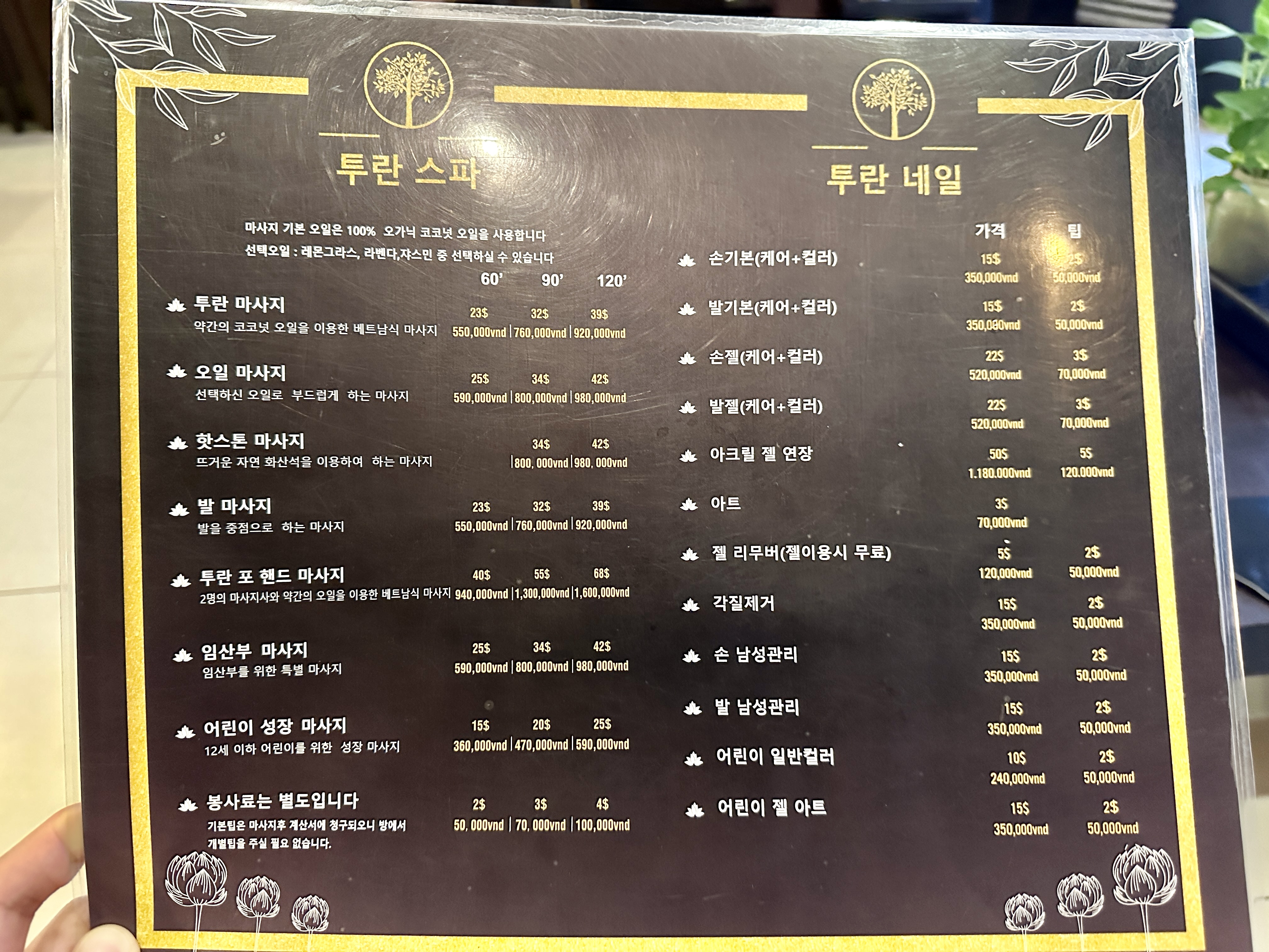 핫스톤 마사지는 90분에 80만동, 2시간에 98만동인데 여기에 10% 세금이 붙습니다.