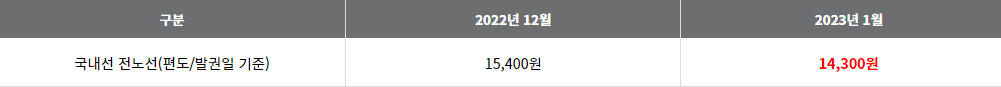 - 발권 적용일 : 2023년 1월 1일 ~ 2023년 1월 31일(발권일 기준)
