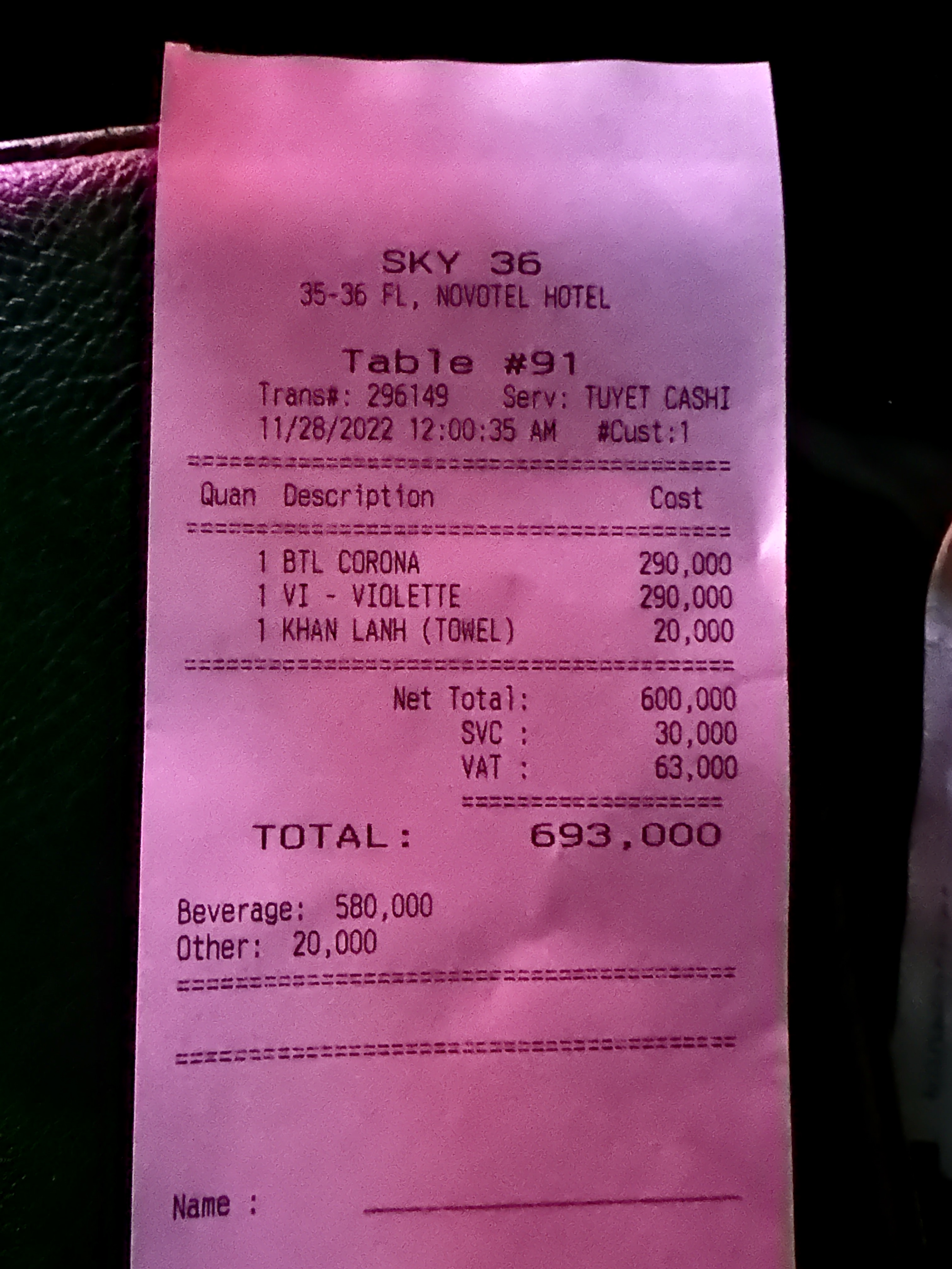 베트남 치고는 다소 가격대가 있는 곳이지만 노보텔 옥상에 루프탑바인 스카이36에서