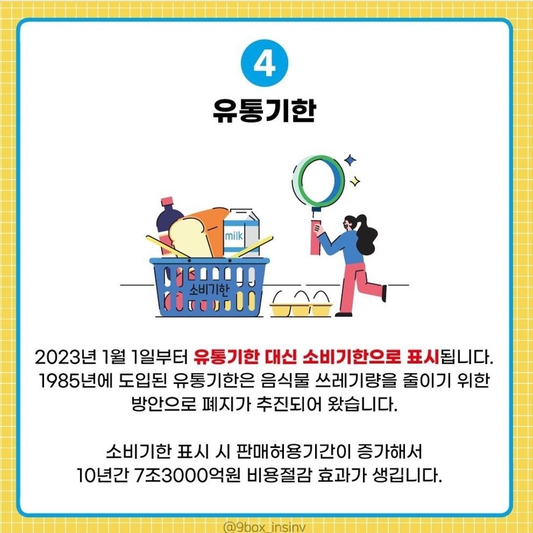 2023년 바뀌는 것들 네번 째 뉴스는 유통기한 표시 대시 소비기한 표시법 채택입니다.
