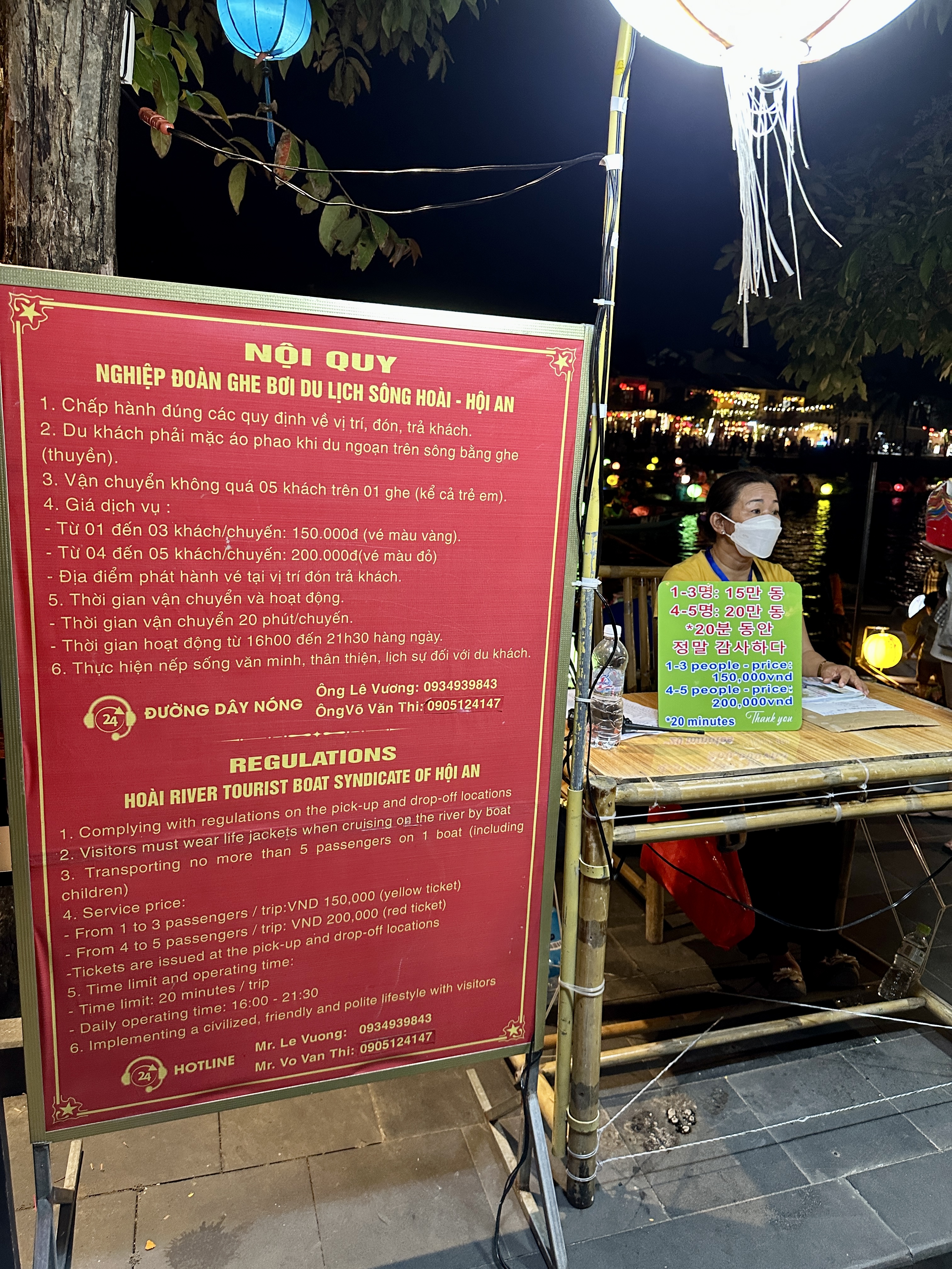 호이안 야경을 즐기는 다른 방법으로 보트투어를 할 수 있었습니다.