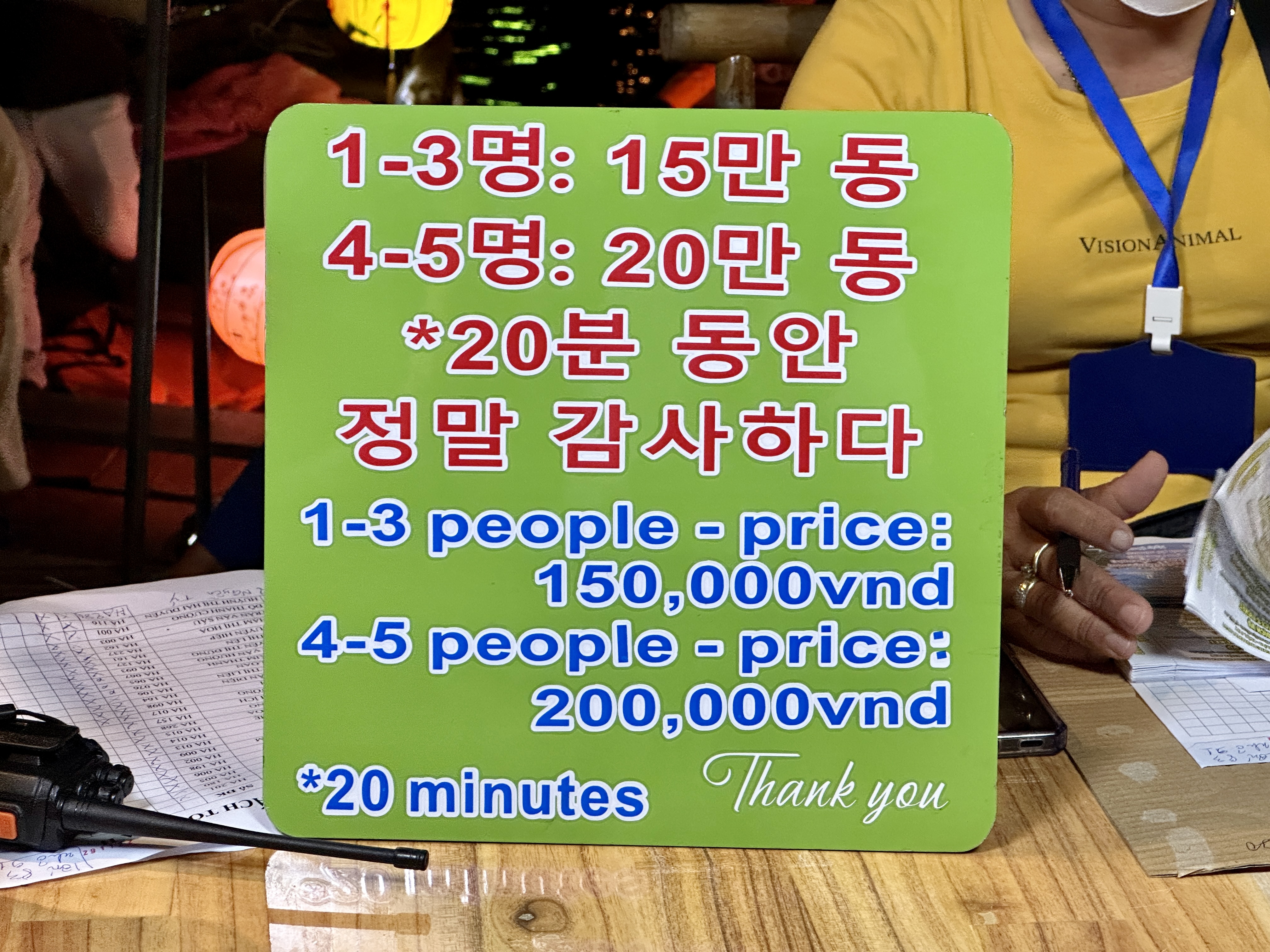 보트투어 가격은 1~3명은 15만동 , 4~5명은 20만동이고 약 20분간 배를 타게 됩니다.