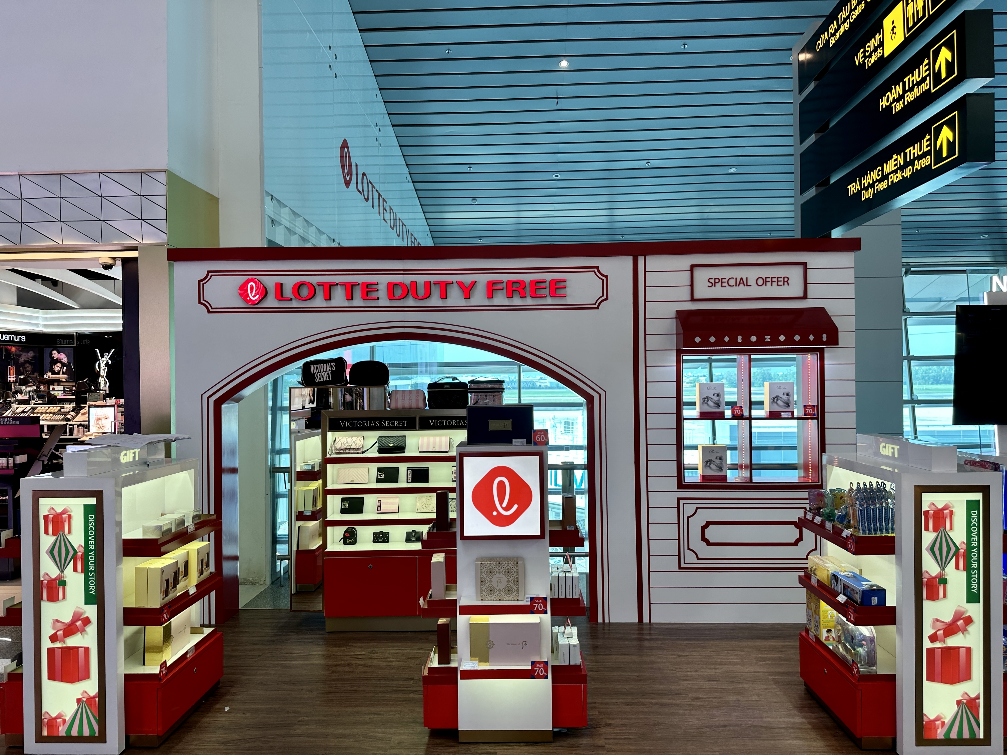 출국 심사를 마치고 나오면 보이는 다낭 공항 면세구역에는 롯데면세점이 많이 보였습니다.