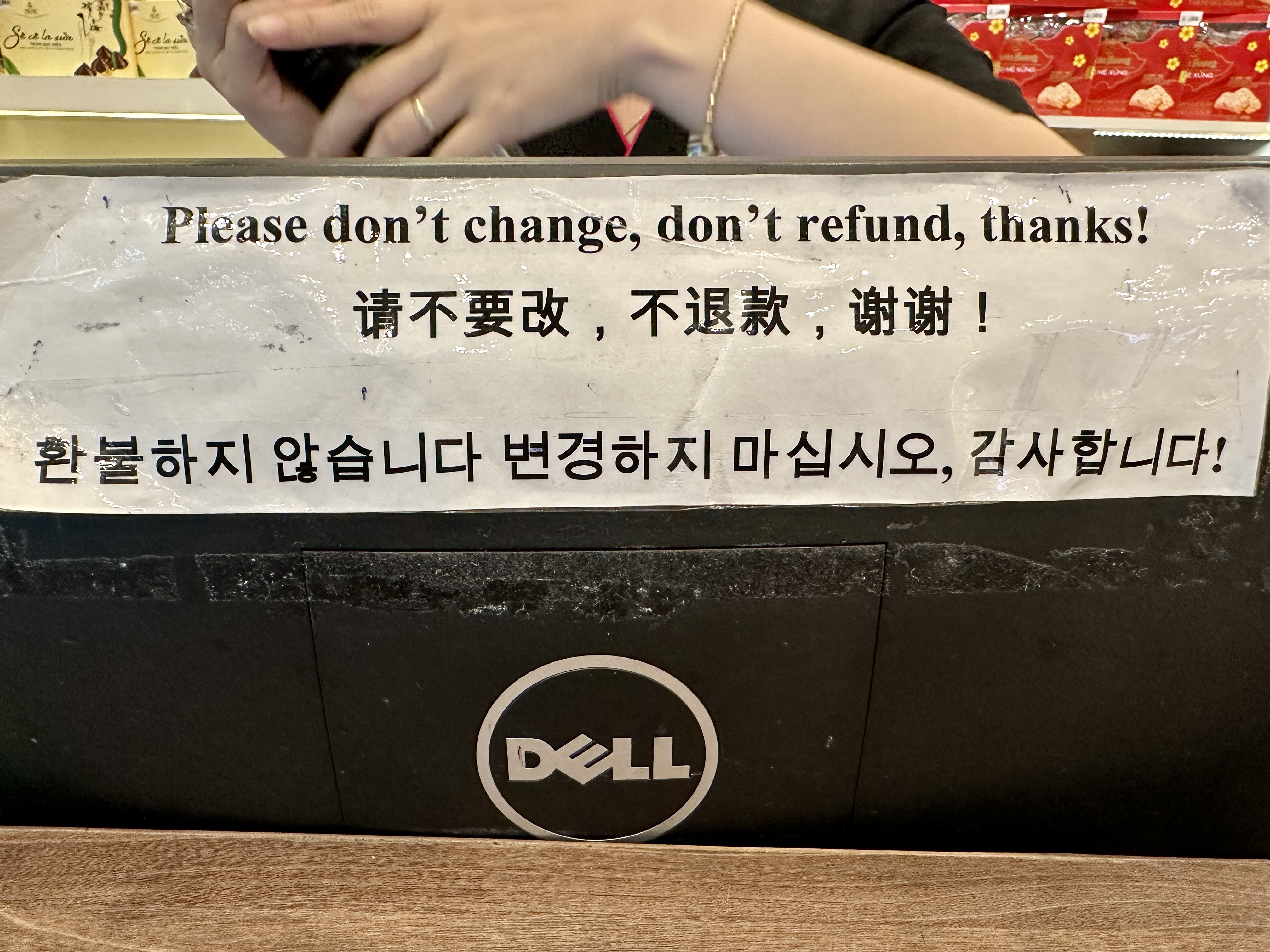 다낭 공항 면세점 어디를 가도 다 환불 불가라는 문구가 써 있었는데요!