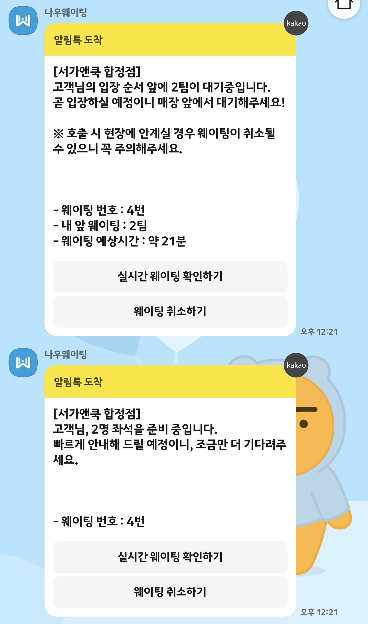 분명 웨이팅 걸었을 때는 21분 대기라고 나왔는데, 운이 좋았던건지