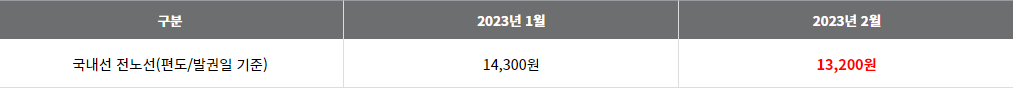 - 발권 적용일 : 2023년 2월 1일 ~ 2023년 2월 28일(발권일 기준)