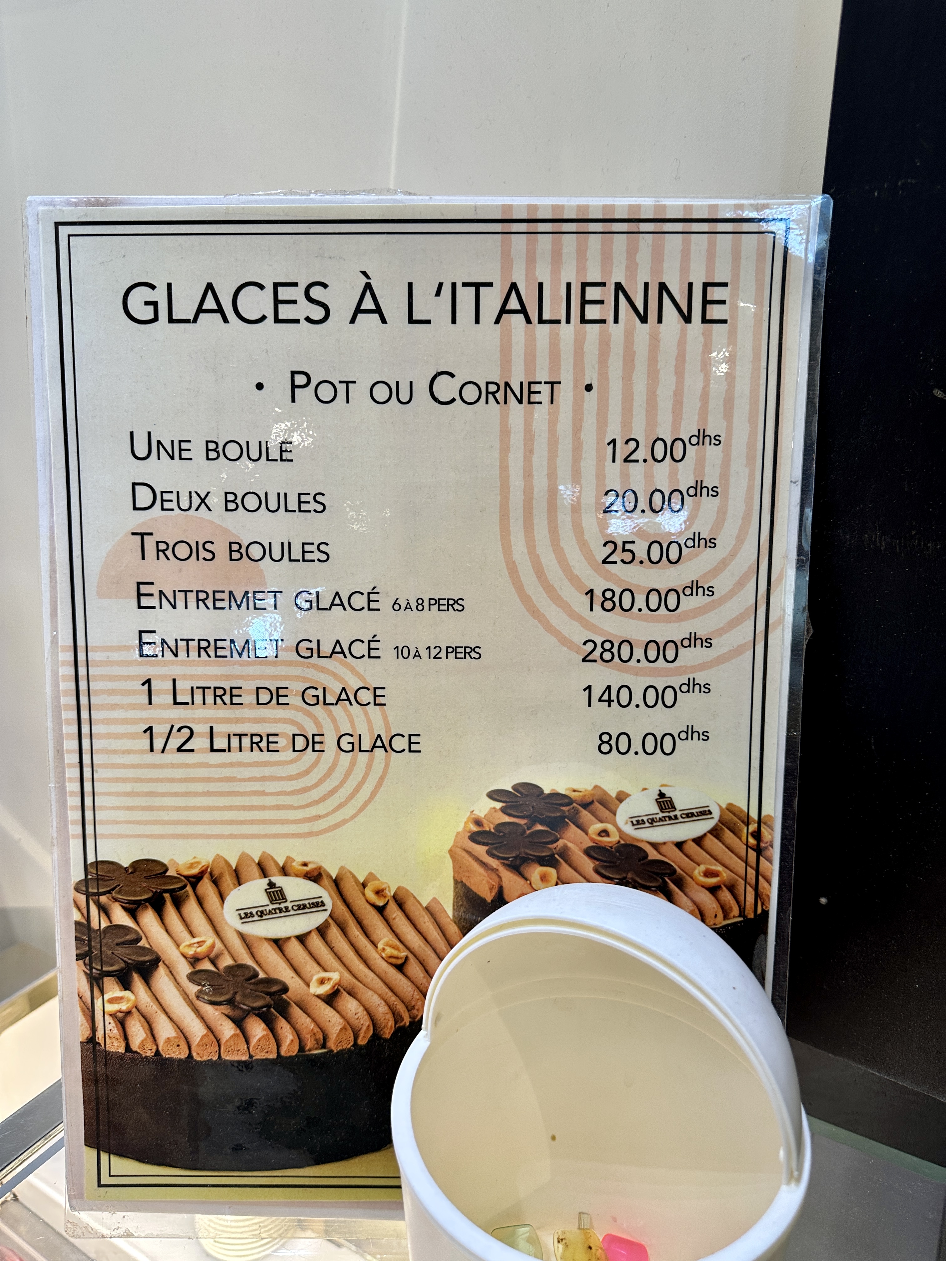 카사블랑카 마리나 몰 로컬 가게에서 아이스크림을 간식으로 하나 사 먹으며 당을 보충했습니다.