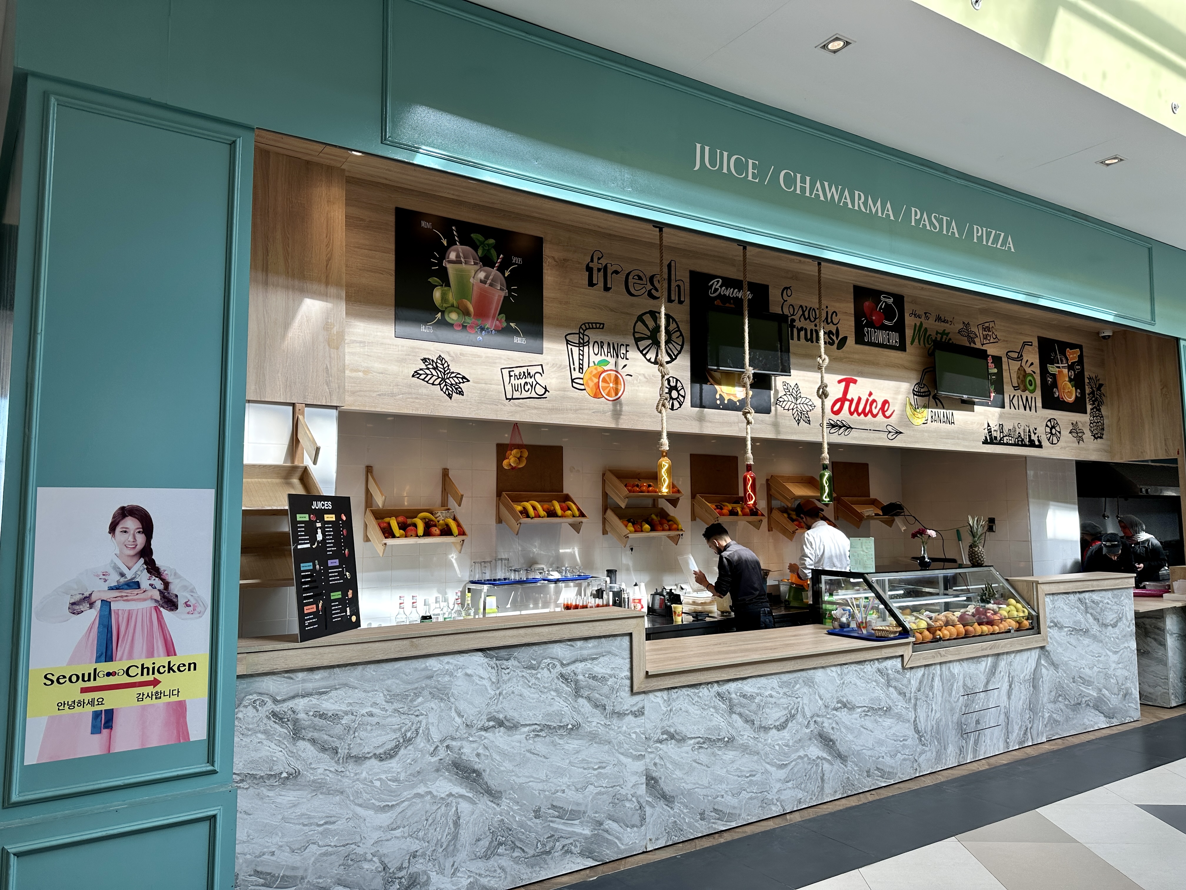 한국 치킨과 핫도그를 판매하고 있었고, 배스킨라빈스도 입점해 있었습니다.