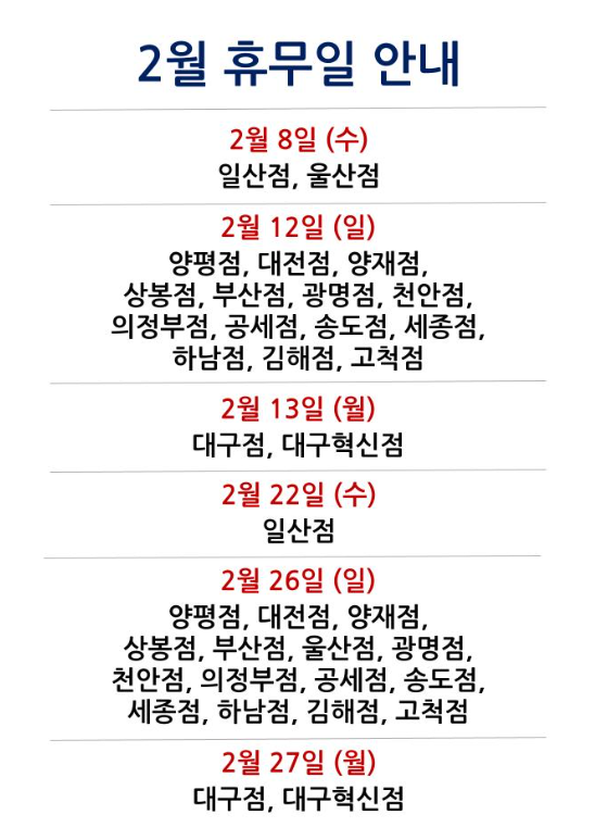 2023년 2월 홈플러스 휴무일 안내 | 홈플러스 2월 휴무일 정보 | 2월 홈플러스 휴무 정보