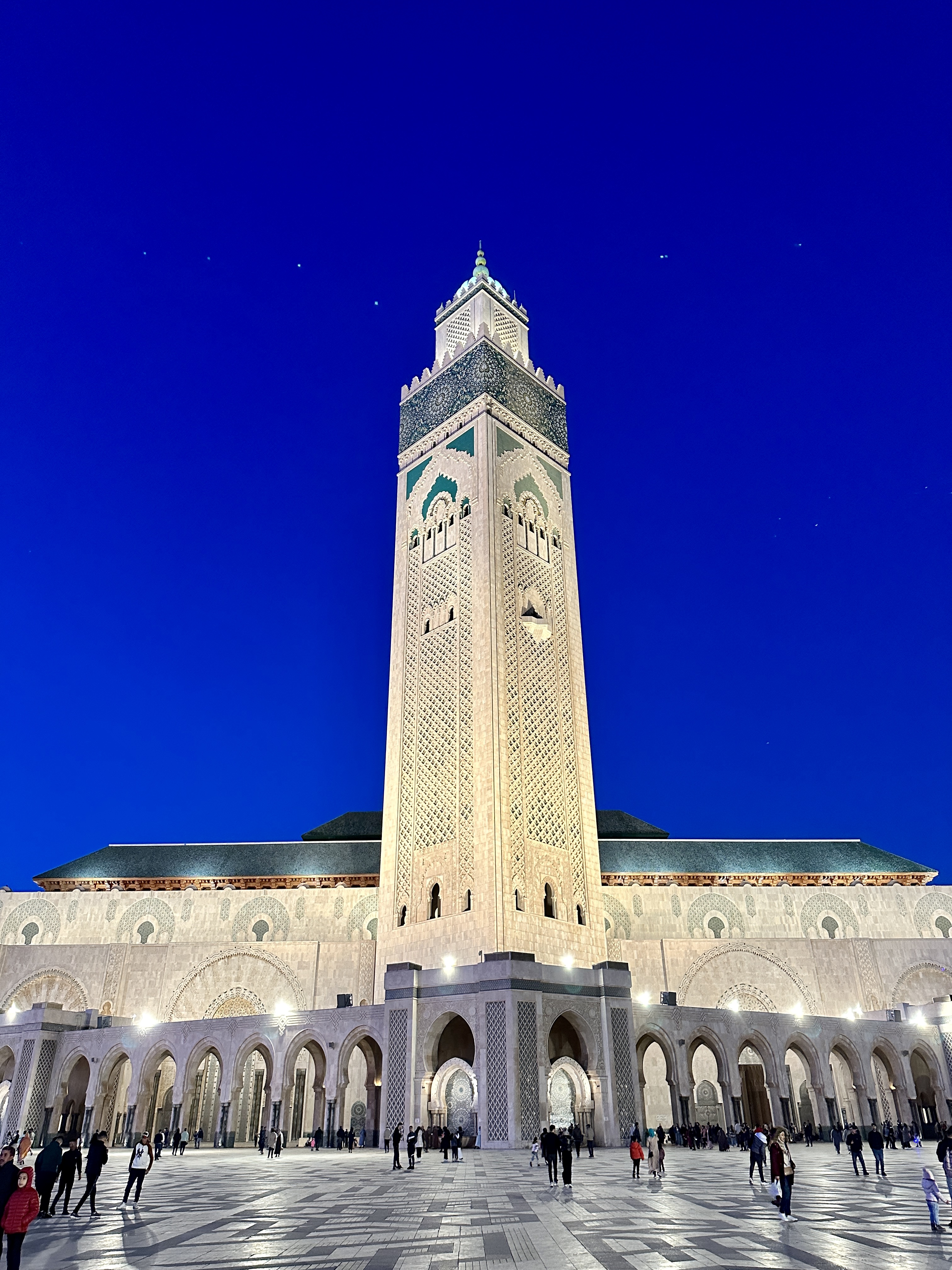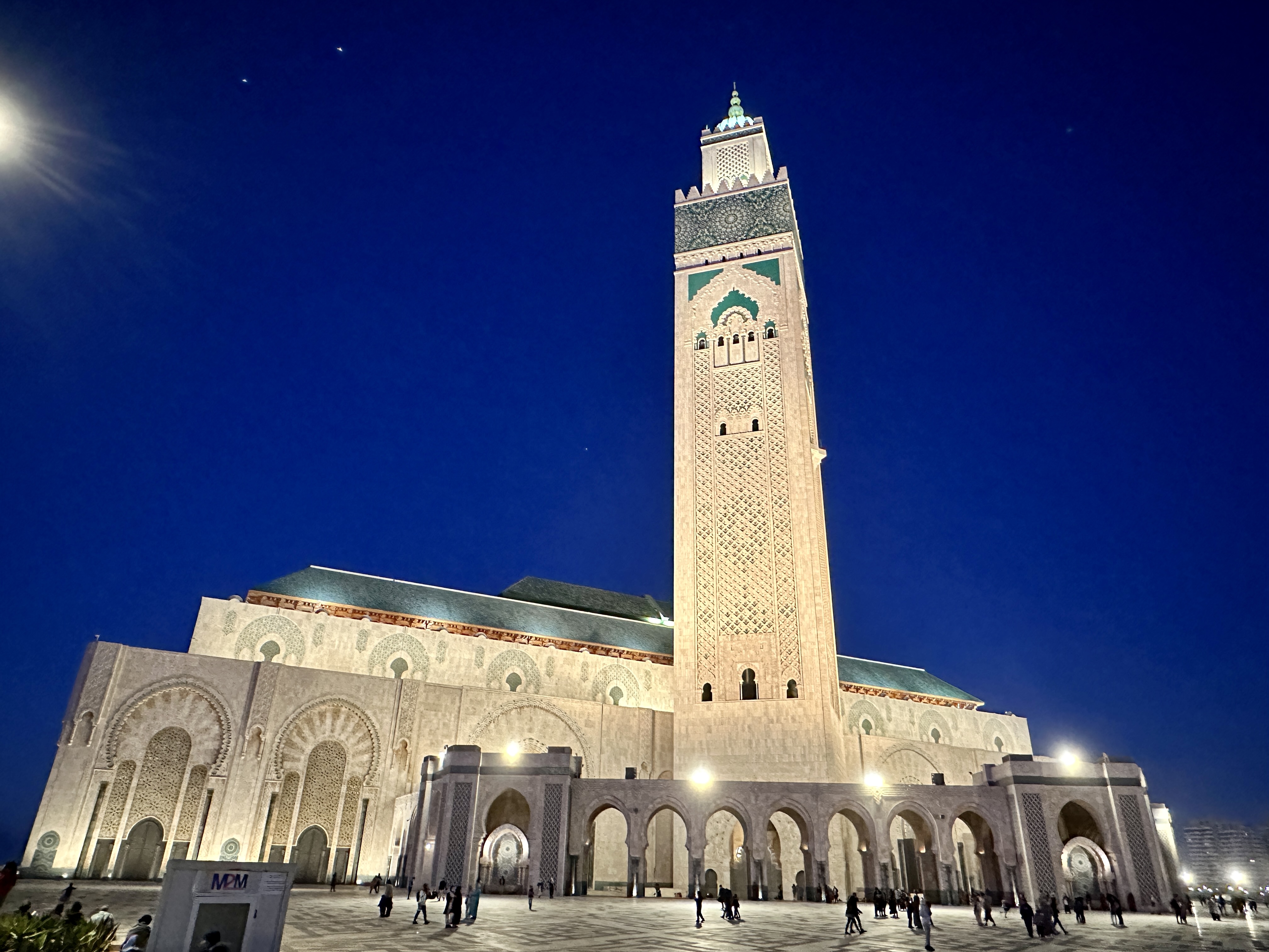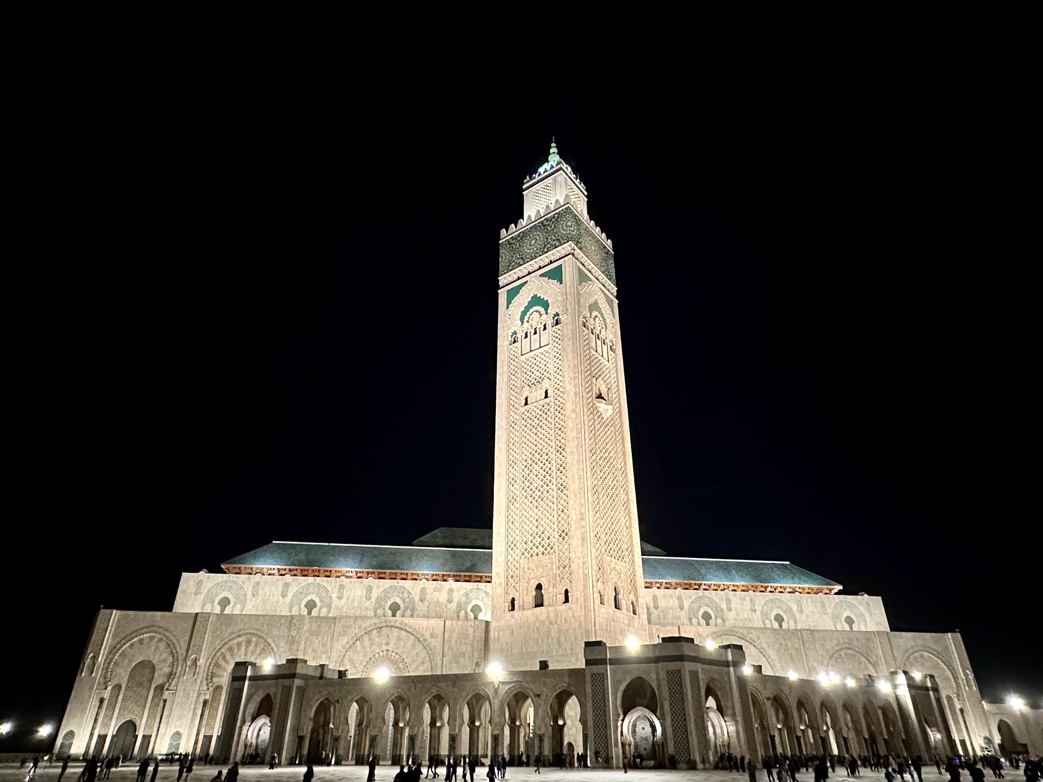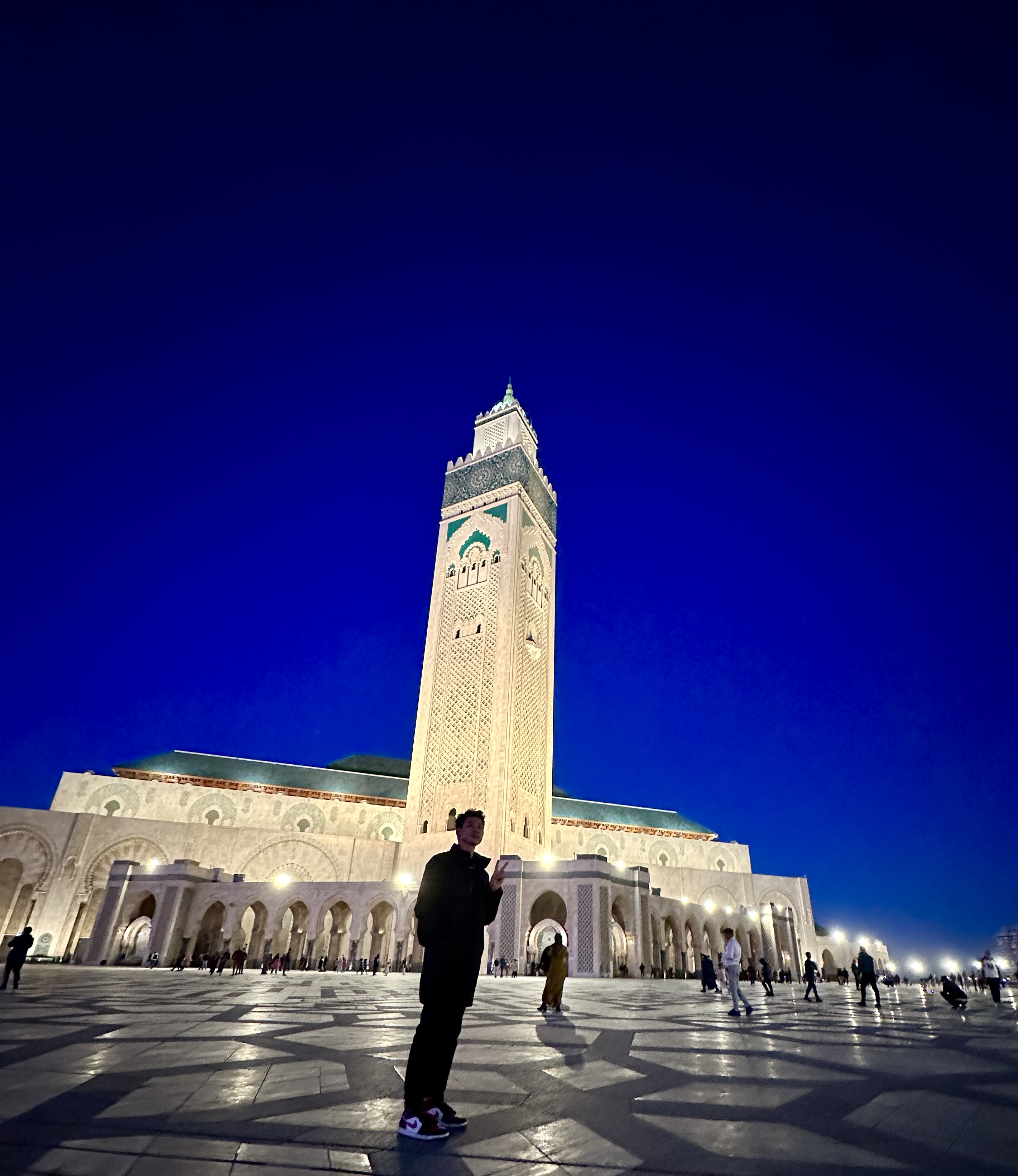 카사블랑카 하산 2세 모스크의 야경이 동양의 끝에서 온 청년을 기다리고 있었습니다.