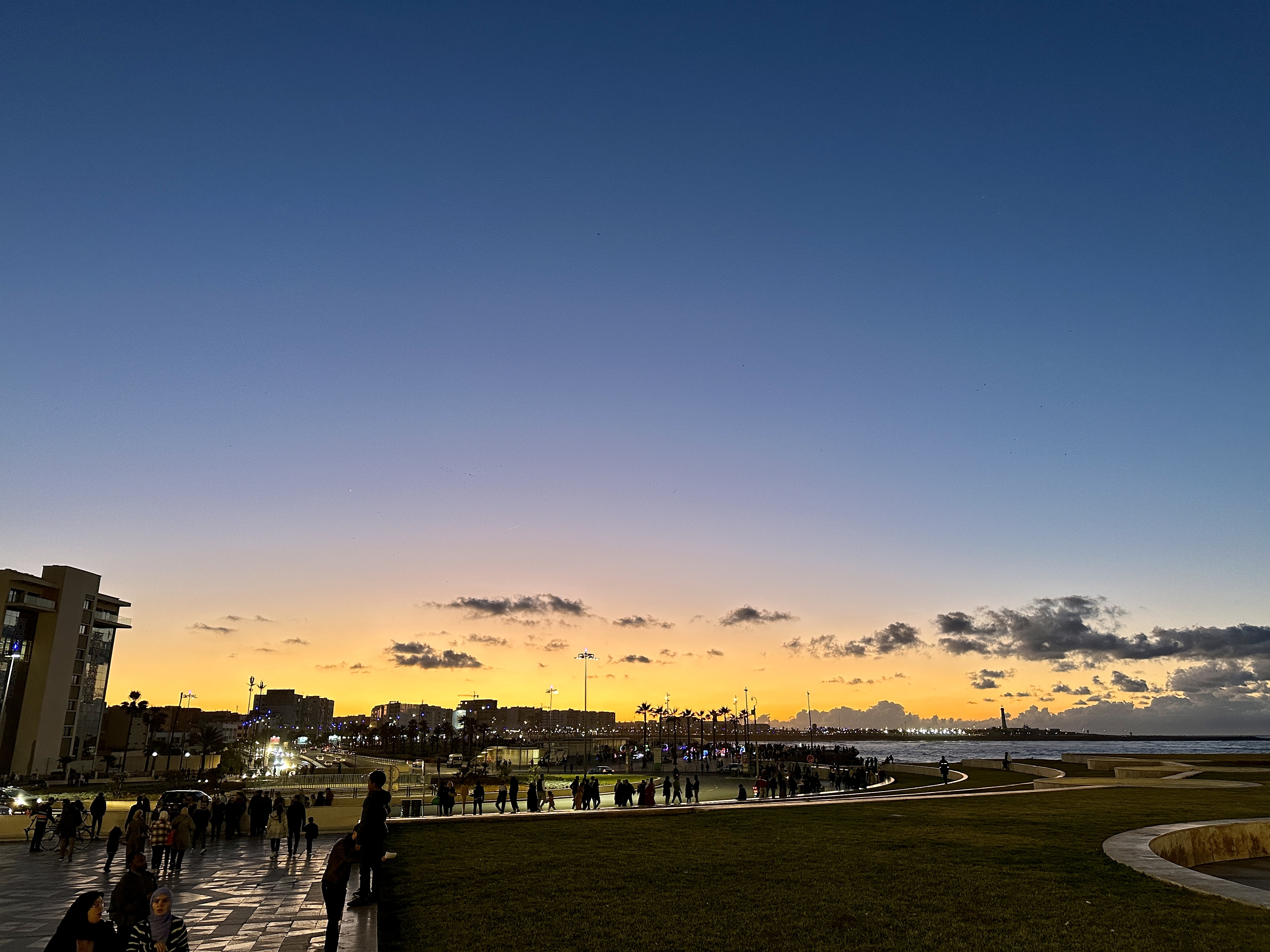샌드위치로 허기를 달래며 카사블랑카의 야경을 보기위해 일몰을 보며 기다렸습니다.