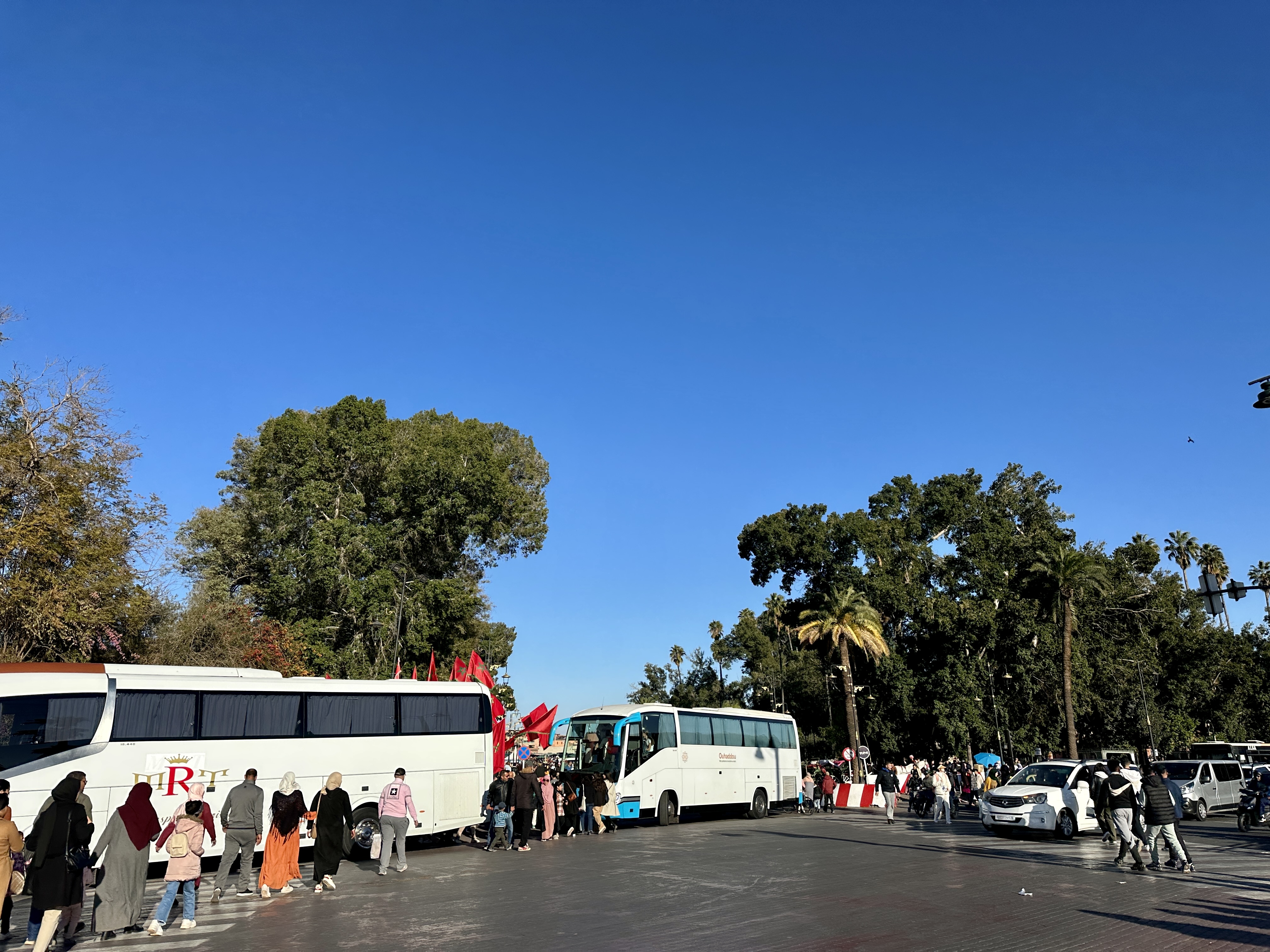 제마알프나 광장 앞으로 단체 여행객을 위한 여행사 버스가 많이 서 있었고,